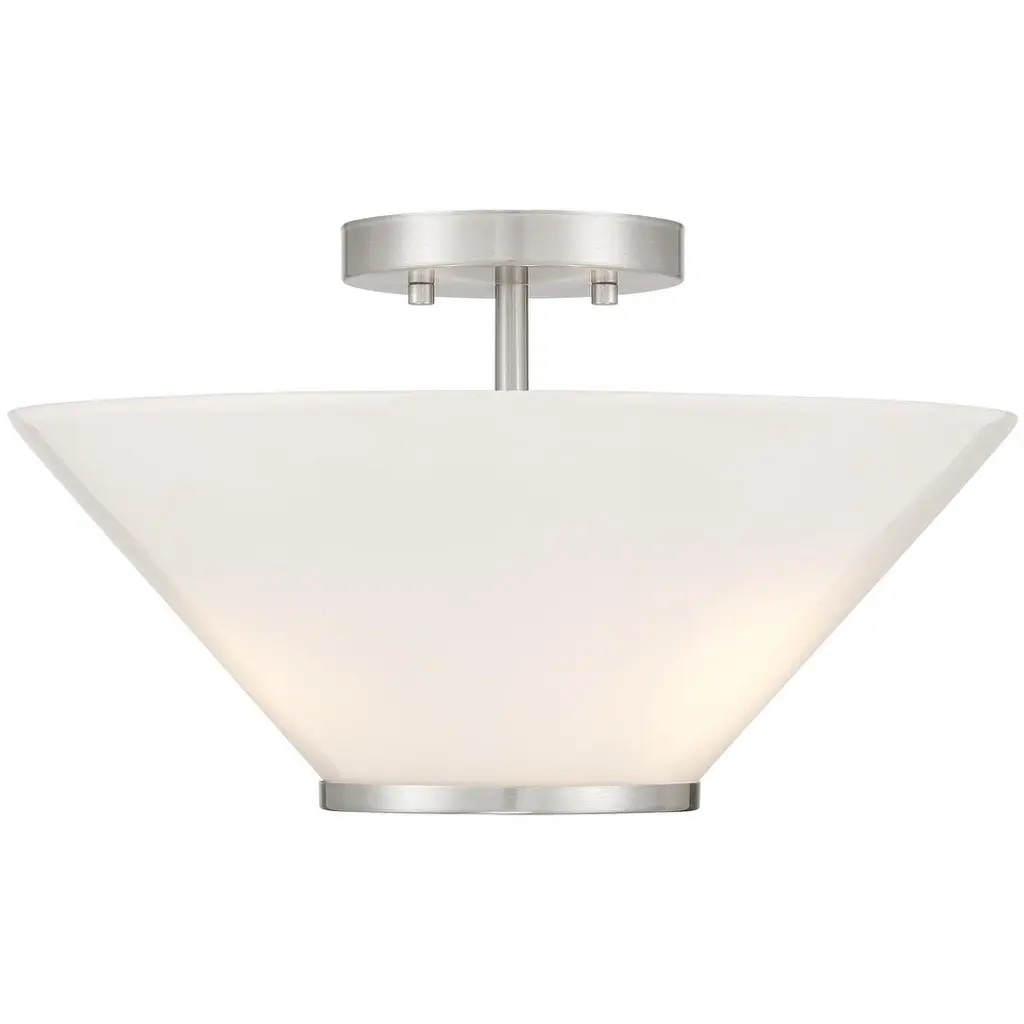 Sarnen Semi-Flushmount from Visual Comfort Signature, formerly known as Visual Comfort, is a steel and glass structure that evokes a futuristic feel. Since it’s suitable for damp locations, this piece would serve across an array of interiors and exteriors. Giving off an abstract spinning top look, the steel base is capped by a frosted glass shade that diffuses ambient light beautifully. Composed by modern creative AERIN, known for her melding of old and new aesthetics, this is an excellent option to brighten a space and enlighten it with design.