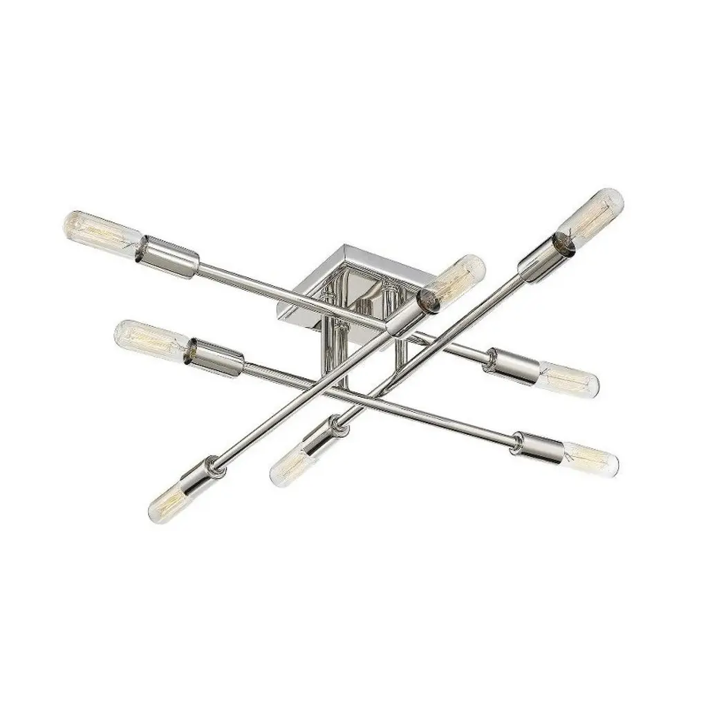 The open, structured look of the Savoy House Lyrique 8-light ceiling semi-flush mount is a great choice for today's stylish interiors. Finished in polished nickel. Semi-flush mounts can be used on the ceiling of pretty much any interior room, including foyers, hallways, stairways, closets, bathrooms, bedrooms, kitchens and more! Bulbs not included. Try using stylized bulbs like Edison or tubular for a different look! The polished nickel finish can be matched with nickel hardware or mixed with hardware in other finishes. Lyrique is perfect for contemporary style spaces and any room that has an edgy touch. When you choose a Savoy House lighting fixture, you can be certain you’ve selected a piece that will withstand the test of time.