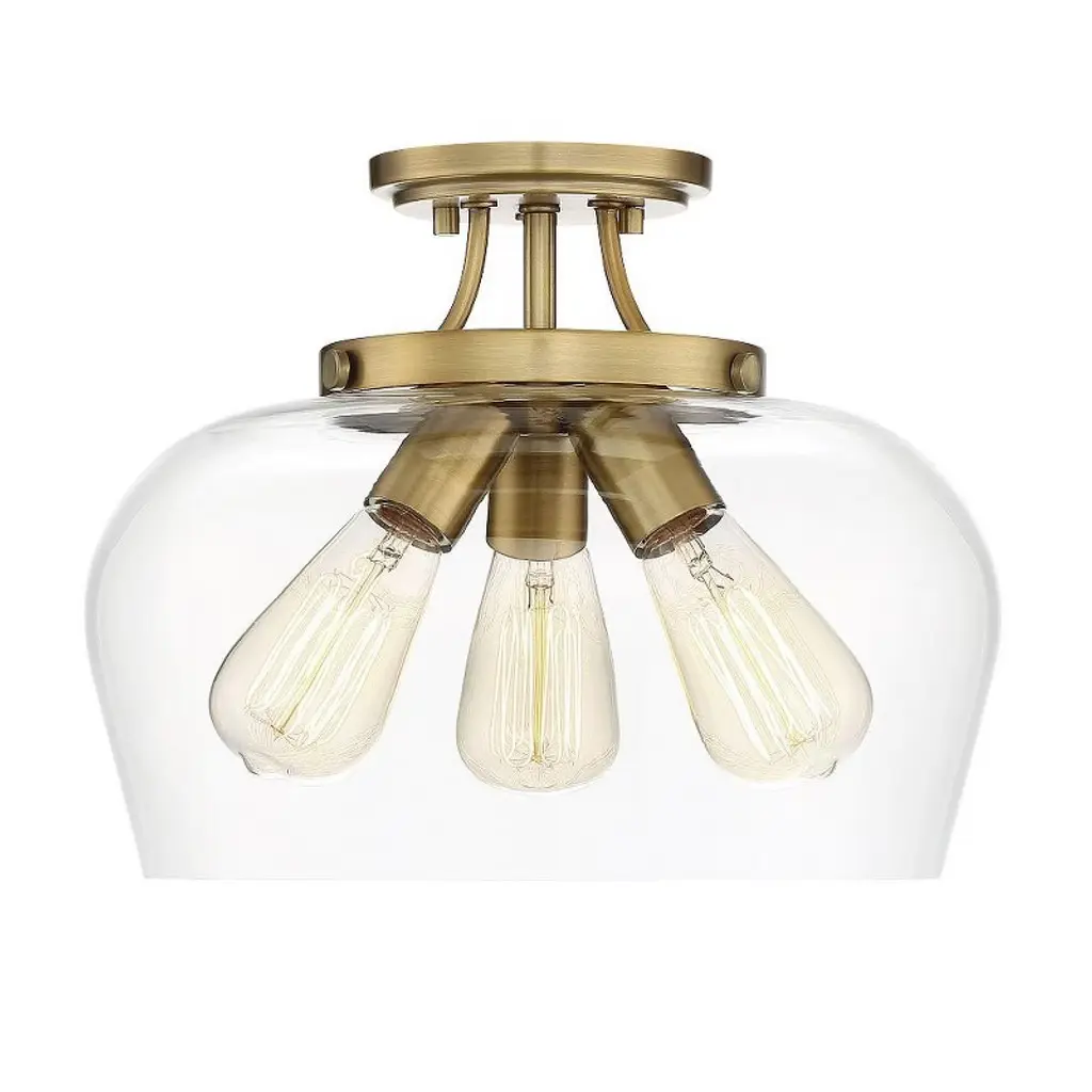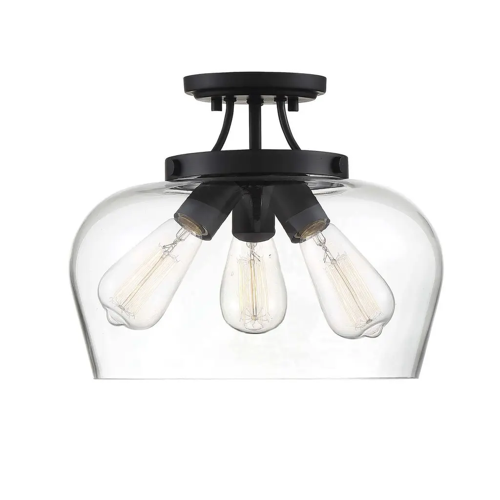 Bold black color and a streamlined silhouette create an air of elegance and sophistication. The black chrome finish and clear glass shade go with absolutely everything: any color palette, other finishes, and many different decor styles. Whether you have traditional, contemporary, transitional, vintage, modern farmhouse, industrial-inspired, or an eclectic mix in your home, you’ll love the way this Octave fixture will stylishly blend in. And at 13” wide by 11” high with a semi-flush mounting, it fits almost anywhere, too. The curved glass shade has a graceful, uncluttered look, and three E-style 60W bulbs will provide lovely light in your dining area, living room, entryway, bedroom, kitchen, or family room.