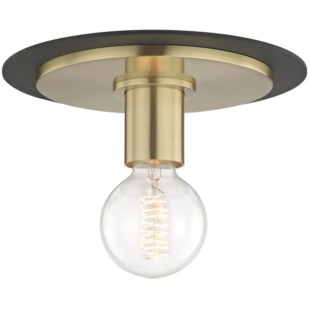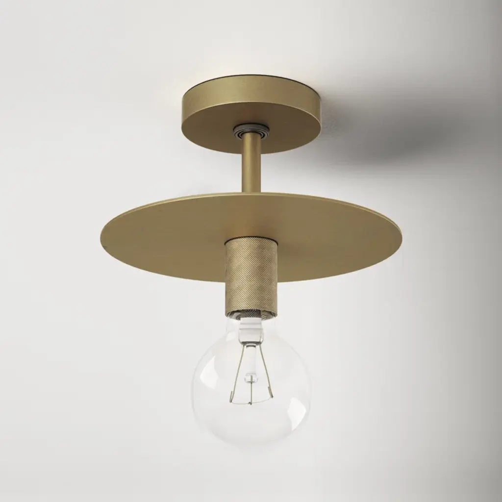 Drawing inspiration from retro silhouettes and industrial design, this 1-light semi-flush mount delivers an updated twist on exposed bulb lighting. It's crafted with a metal body, and has a pared-down design with a disc-like shade at the base of its downrod. The shade adds a mid-century element to this fixture, and helps catch the light of the 60W bulb (sold separately). Plus, this fixture is compatible with dimmer switches and sloped ceilings. Measuring just 10'' in diameter and 7'' high, this space-conscious light is easy to fit into smaller rooms.