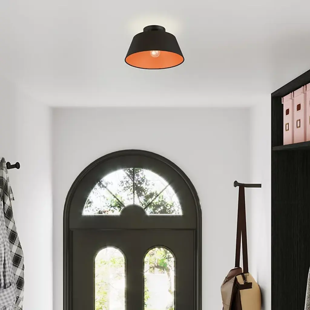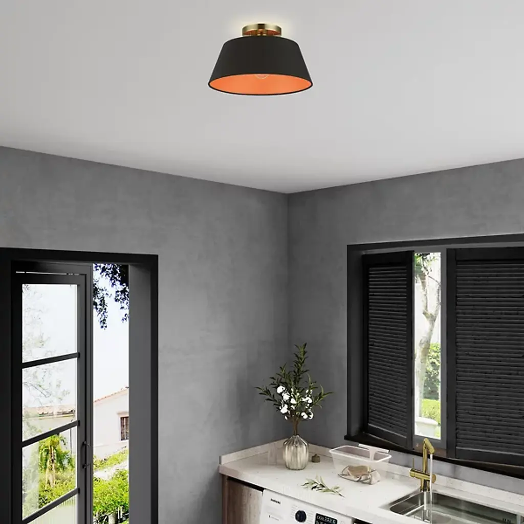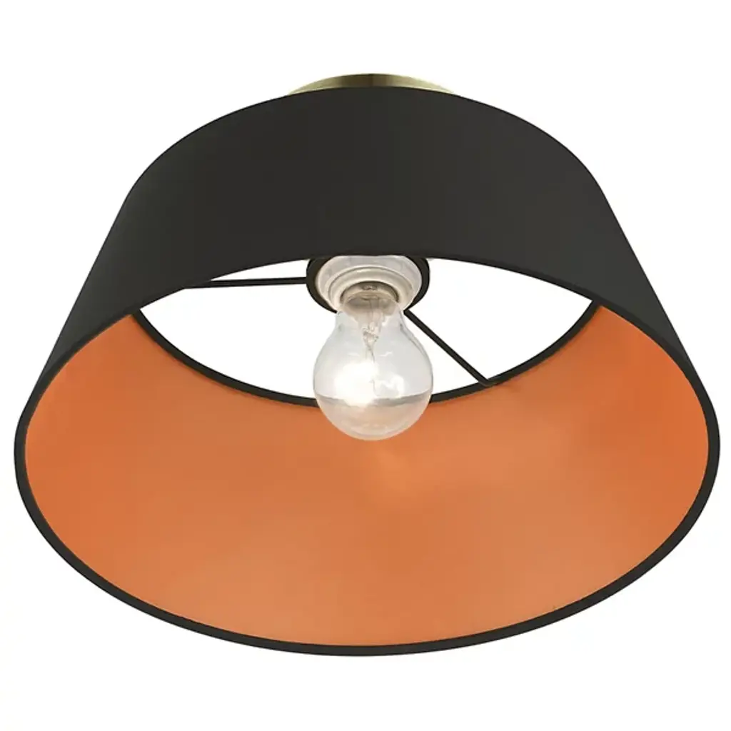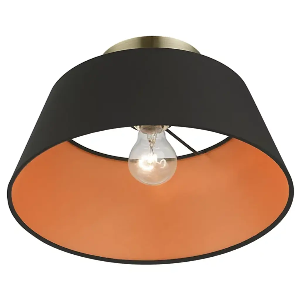 The Schwartz Tapered Semi-Flushmount by Alder & Ore is a handsome addition to spaces with some fun flair. Nestled close to the ceiling, a slightly tapered, hand-crafted, drum-shaped shade creates a space for light to shine from. Inside this shade, a bright pop of color gives this design some personality as it casts a welcoming glow down onto its surroundings. Simply composed but never boring, this fixture will add a bright touch to rooms.