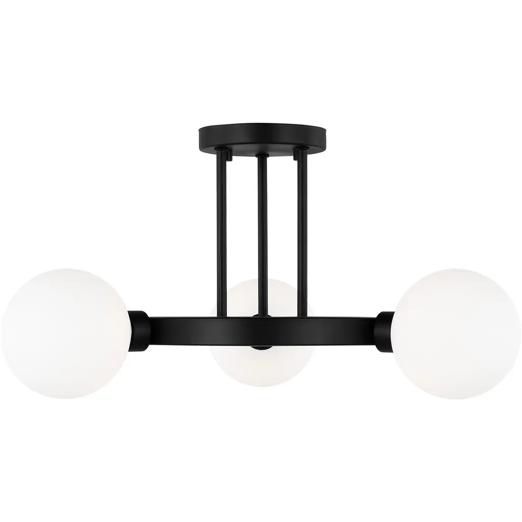 The Clybourn three light semi flush fixture in Satin Brass is an industrial yet minimalist design, making this fixture perfect for an eclectic living room or over a modern dining room table. Milk Glass gives the Clybourn series a more current look.