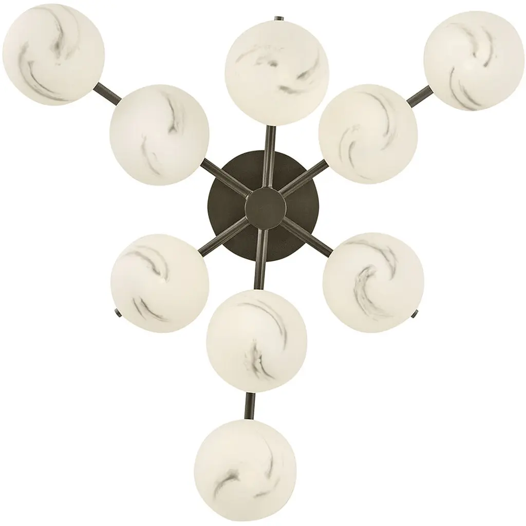 Selene is what dreams are made of. Swirled glass globes dance along the silhouette, providing an enticing, ambient glow that attracts attention in all the right ways. Selene indulges in the details and revels in the spotlight, projecting a strong confidence in modern design.