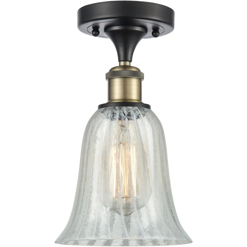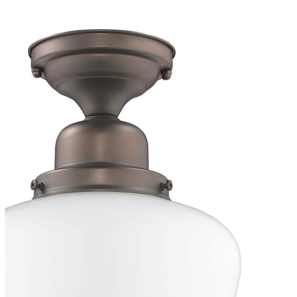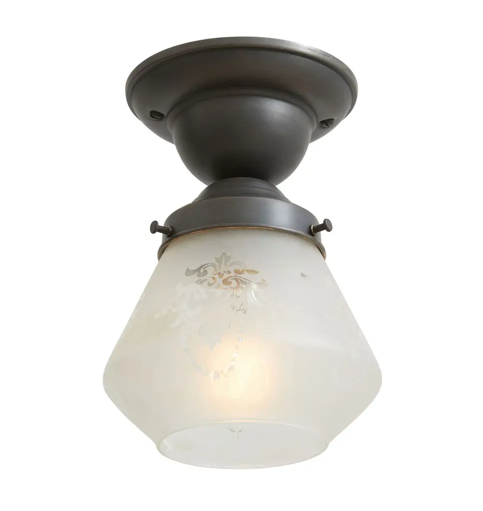 Semi Flush Mount With Vintage Frosted Glass Shade In Etched Revival Motif