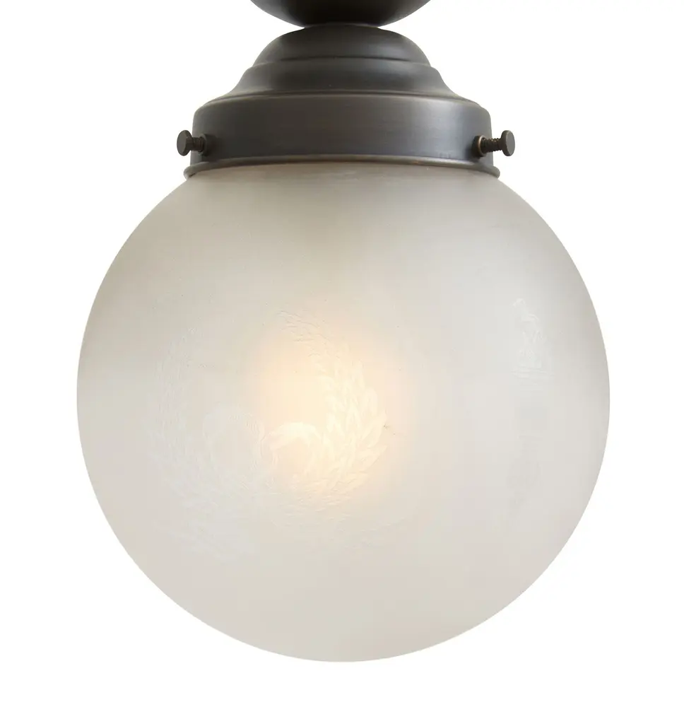 Semi Flush Mount With Vintage Globe Frosted Glass Shade With Etched Floral Motif