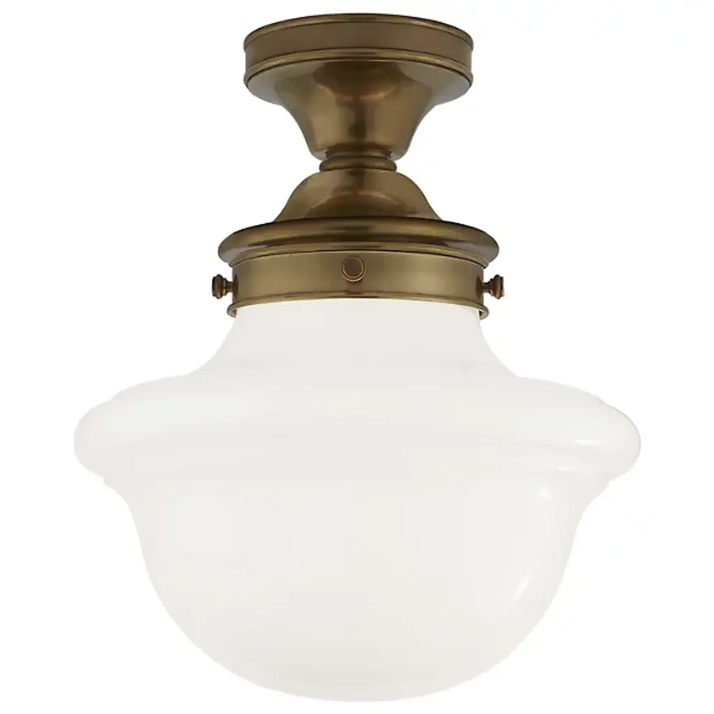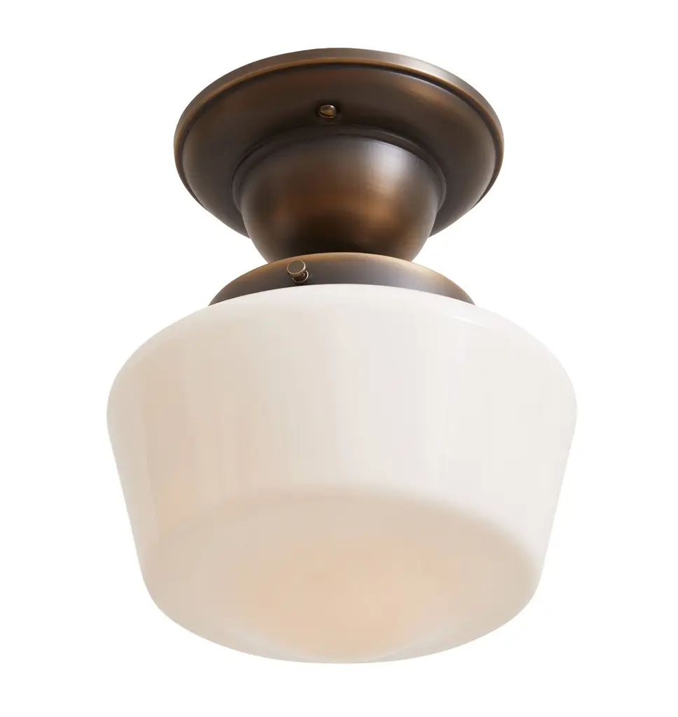 Semi Flush Mount With Vintage Schoolhouse Opal Glass Shade