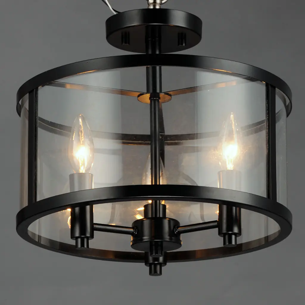 Sentinel 3 Light 13 Inch Black Semi-Flush Mount Ceiling Light