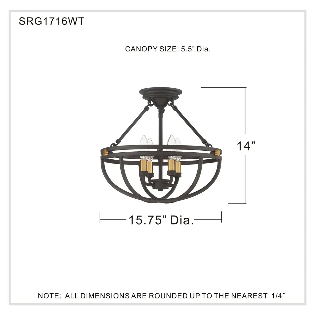 Sergeant 4 Light 16 Inch Western Bronze Semi-Flush Mount Ceiling Light
