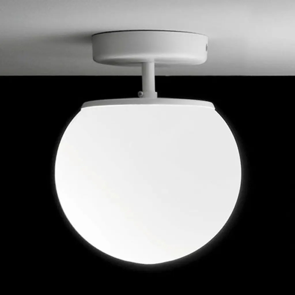 A studied representation of mid-century modernism at its best, the Zafferano America Sferis Flushmount presents an iconic globe shade fashioned from blown triplex Opal glass. Originals can still be regularly spotted in post and beam houses of the early '60s - especially those built by Joseph Eichler - and the simply stylized silhouette remains immensely popular today. Available with a White or Chrome suspension stem and canopy.