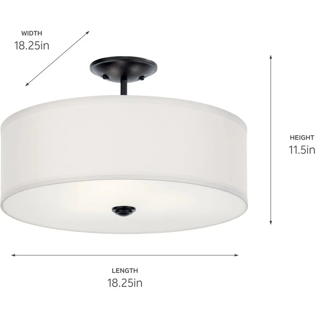 Shailene 3 Light 18.25 Inch Black Semi Flush Mount Ceiling Light