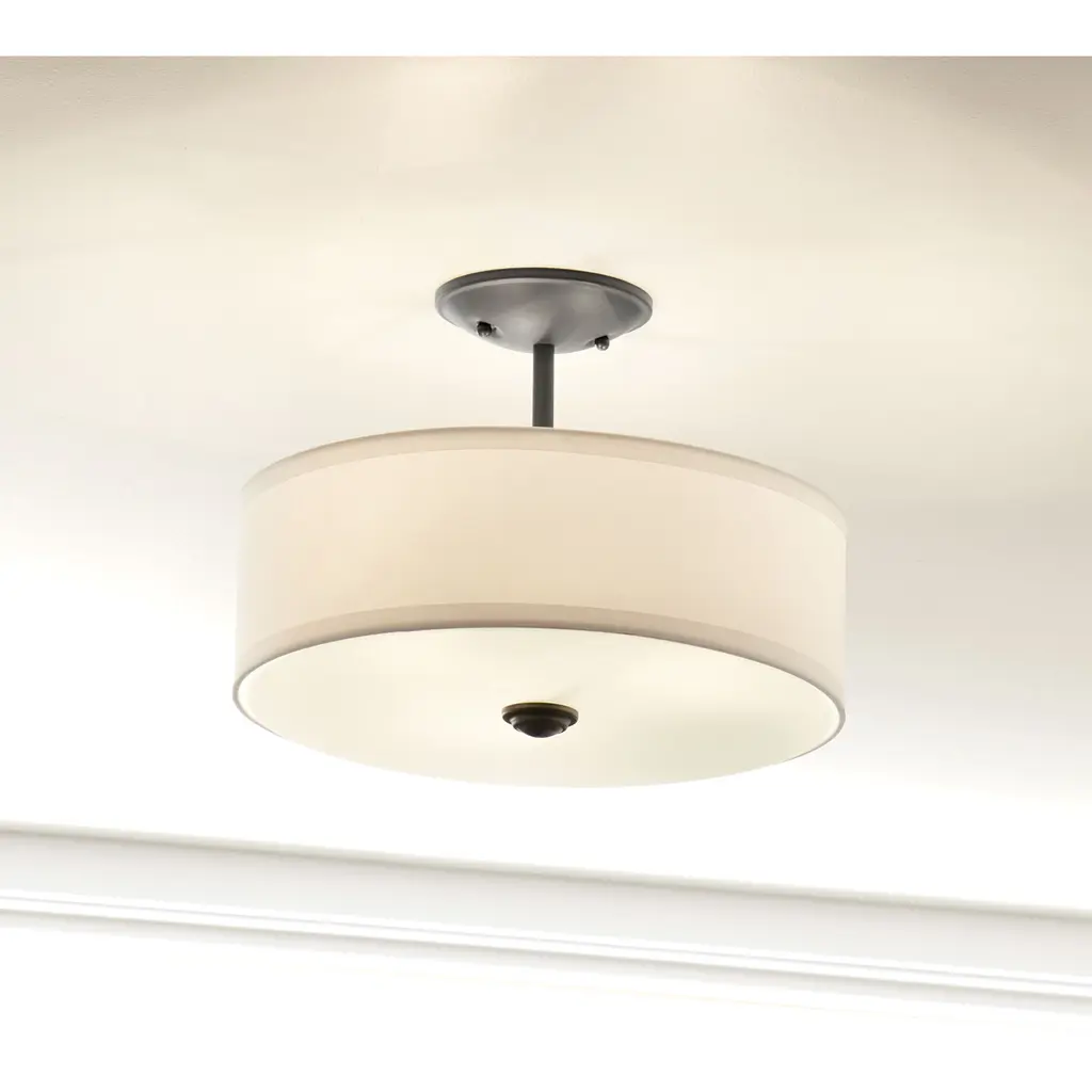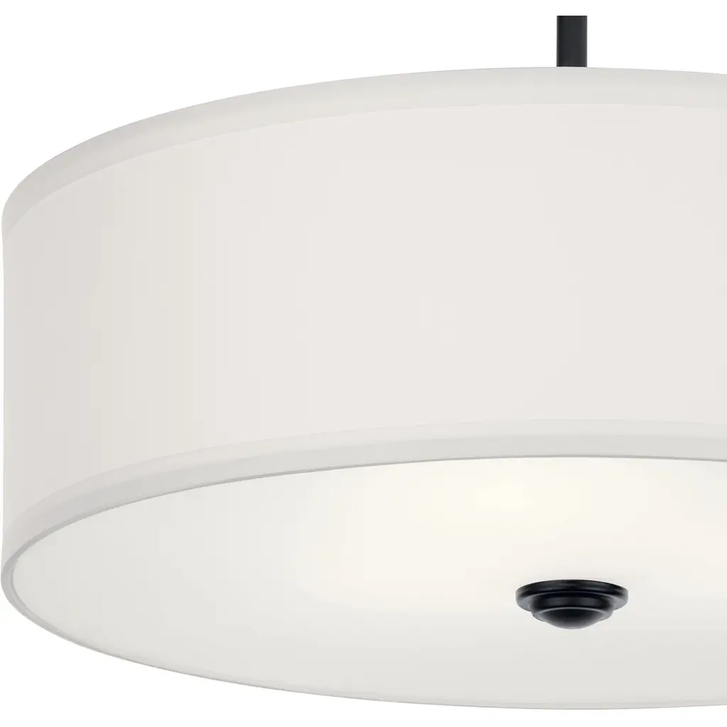 Shailene 18" 3 Light Round Semi Flush with Satin Etched White Diffuser and White Microfiber Shade in Brushed Nickel