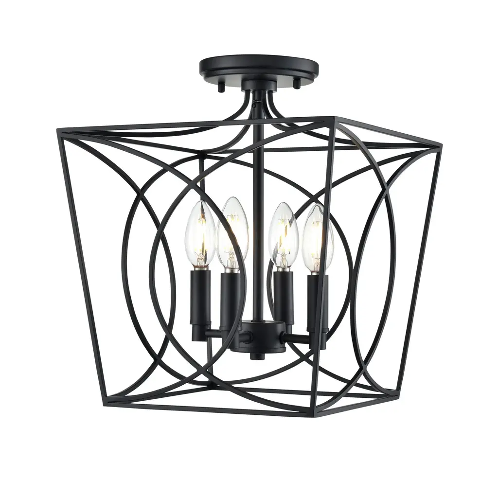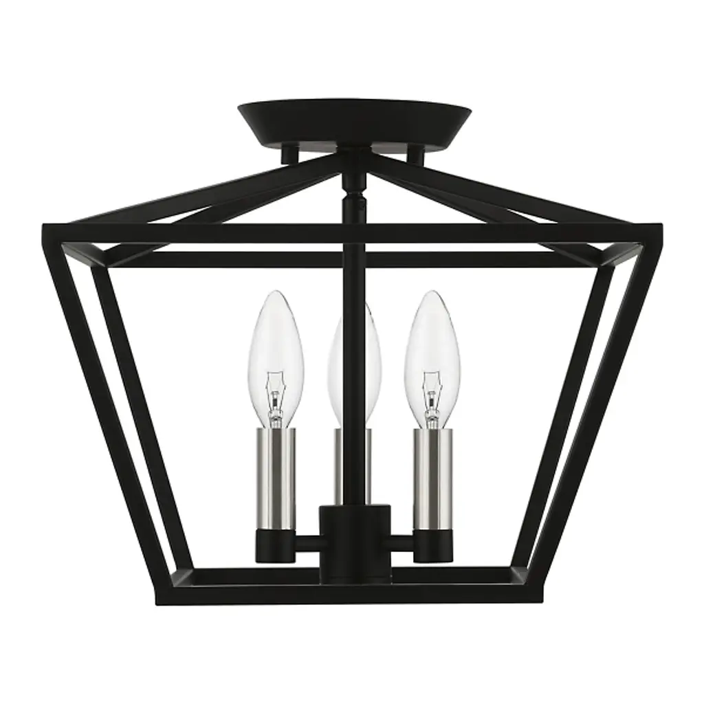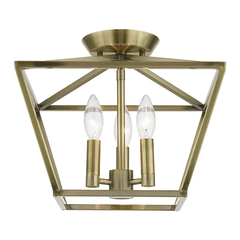 Lend stately appeal to interiors with the Shasta Semi-Flushmount from Alder & Ore. A transitional design starting with a beveled disc canopy, it dispatches a central downrod to candelabra lamping below. A trapezoidal frame extends out around the lamping, adding an elegant, angular accent, casting sharp-cornered shadows around the fixture when illuminated.