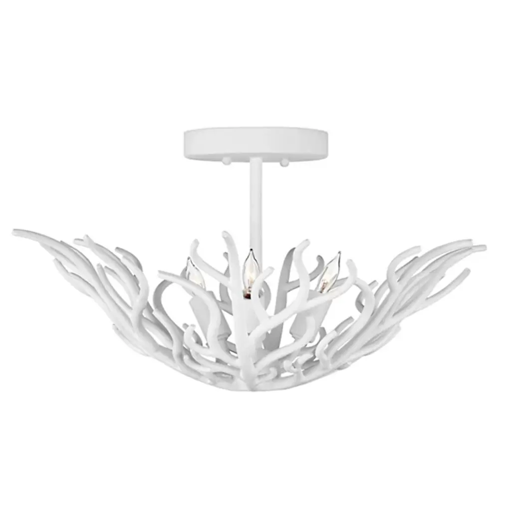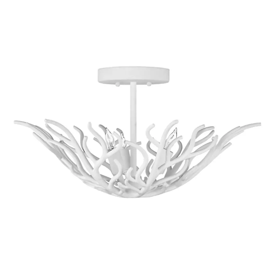 The Snowfall Semi-Flushmount from Currey & Company is a fusion of nature-inspired aesthetics and transitional design. The meticulously crafted framework boasts branch-like contours, making a bold statement in your living space. Secured by a downrod attached to a ceiling canopy, this semi-flushmount brings a touch of elegance to your décor. Illuminated by vibrant LEDs, Snowfall provides ample amounts of inviting light. Crafted from durable wrought iron, it provides longevity and quality.