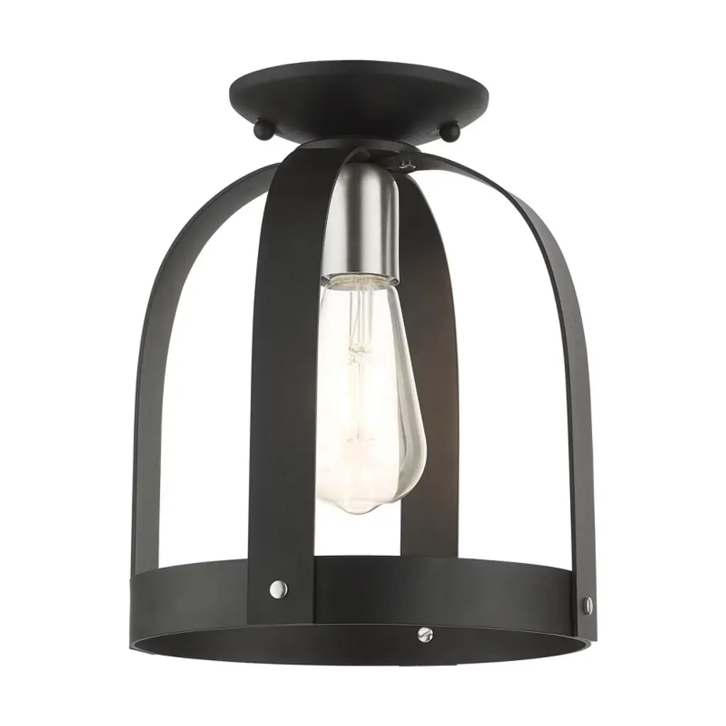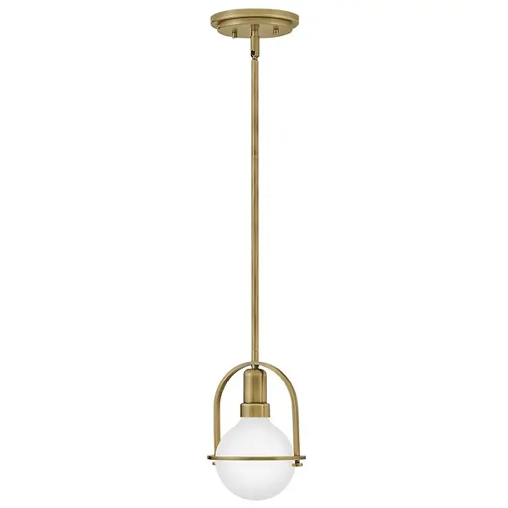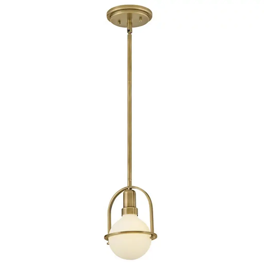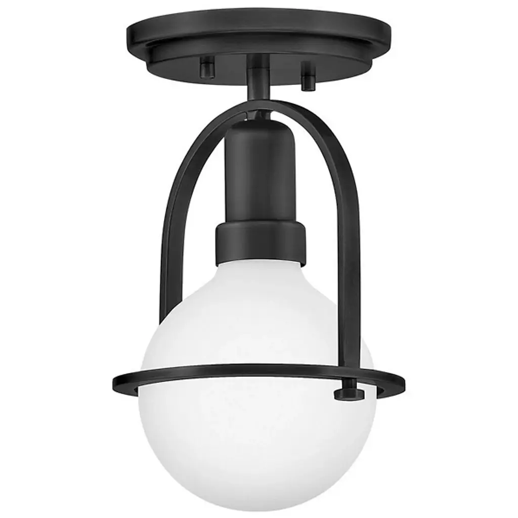 The Somerset Semi-Flushmount from Hinkley suspends a globe-shaped etched opal glass within a precisely crafted metal yoke. This transitional design introduces subtle vintage touches through thoughtful details like the turned metal knobs that anchor the glass. The lighting fixture offers installation versatility with its convertible design—functioning as either a pendant or semi-flush mount depending on your space requirements. Multiple included stem options allow for custom height adjustments to suit various ceiling heights and room proportions. This adaptable piece works equally well in dining rooms, entrances, or hallways.