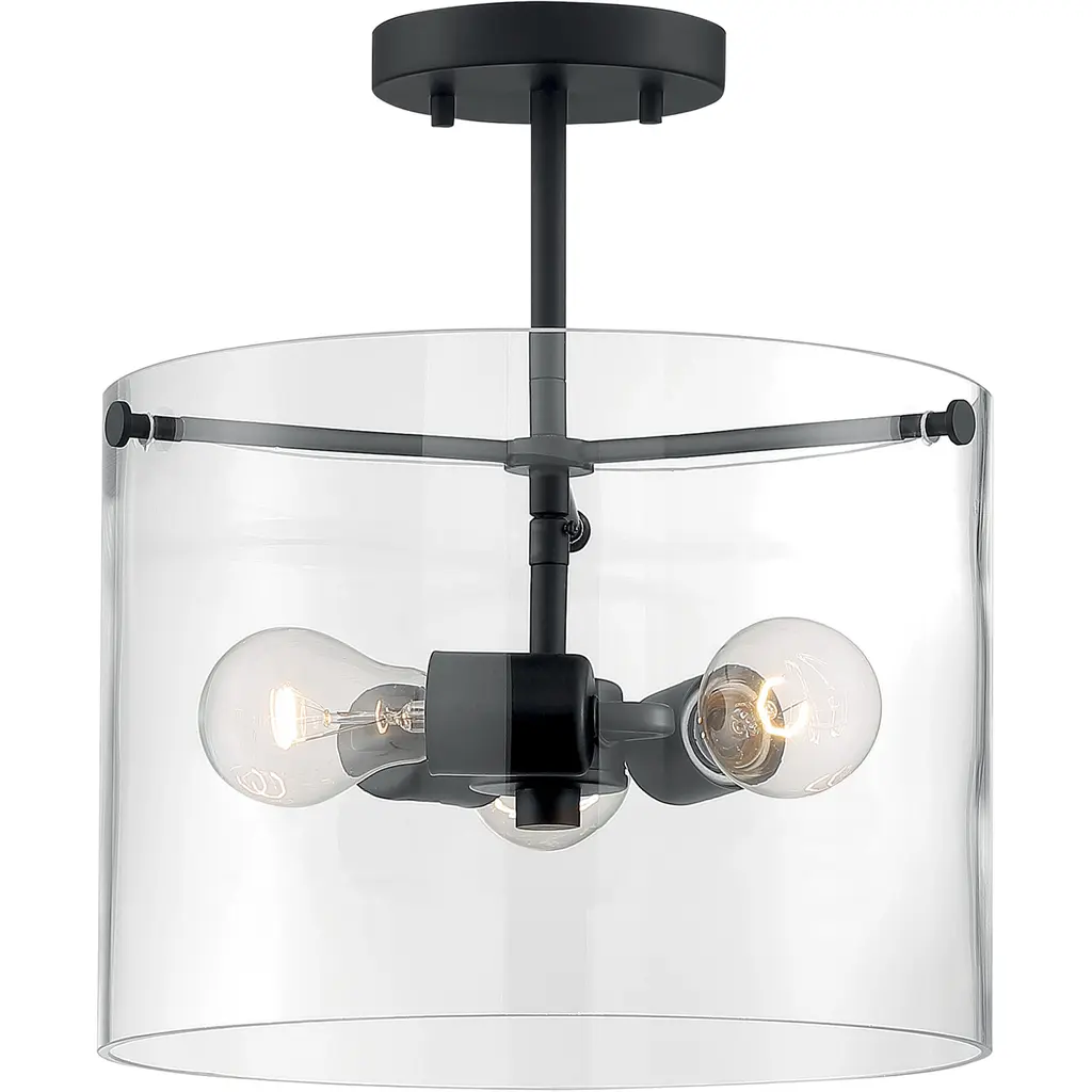 Sommerset 3 Light Semi-Flush with Clear Glass Matte Black Finish