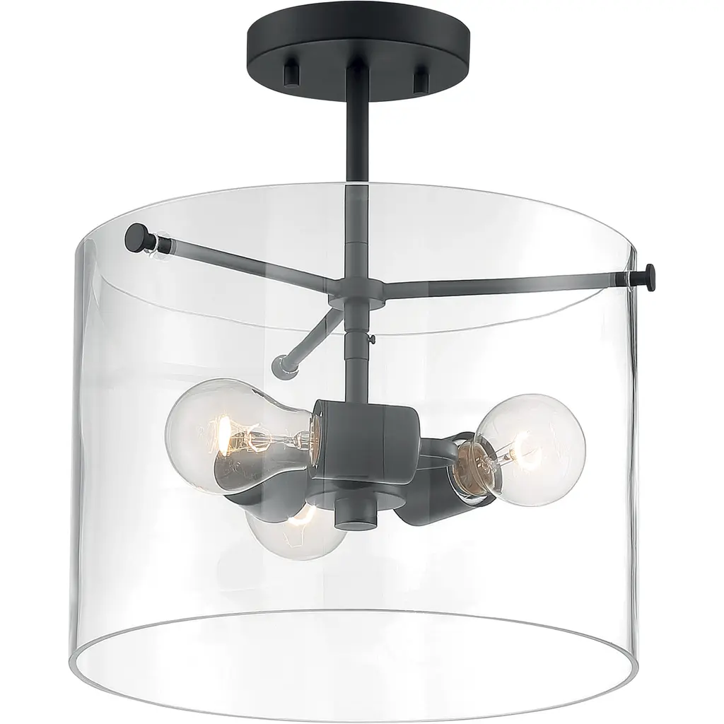 Sommerset 3 Light 12 Inch Matte Black Semi Flush Mount Fixture Ceiling Light
