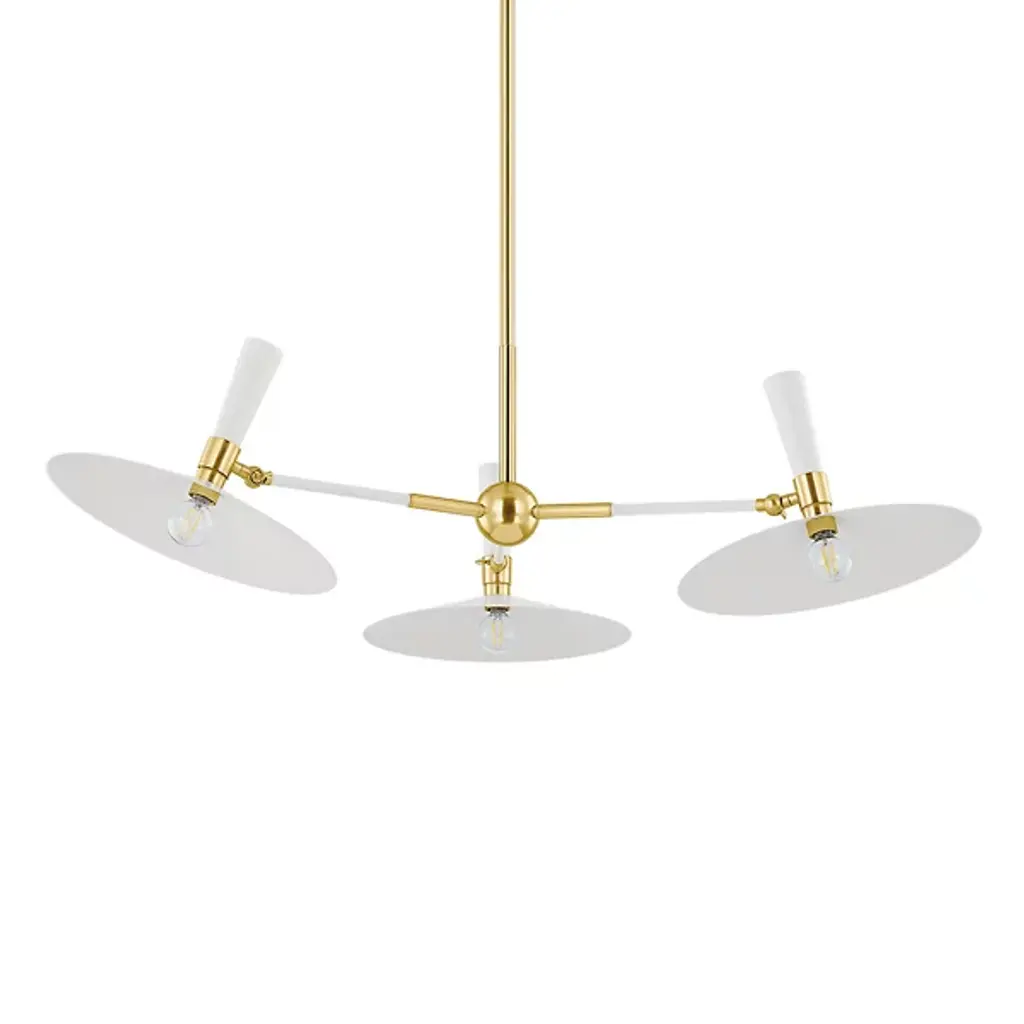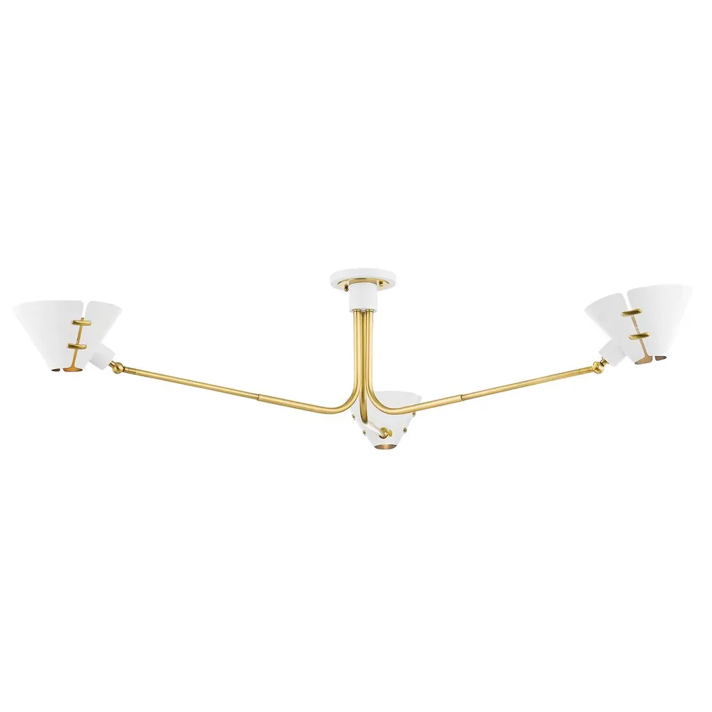 Split brings together clean, modern design with an artisan's flair. Small aged brass fasteners connect the cone shades, adding a spark of color while intentionally allowing a sliver of light to pass through.