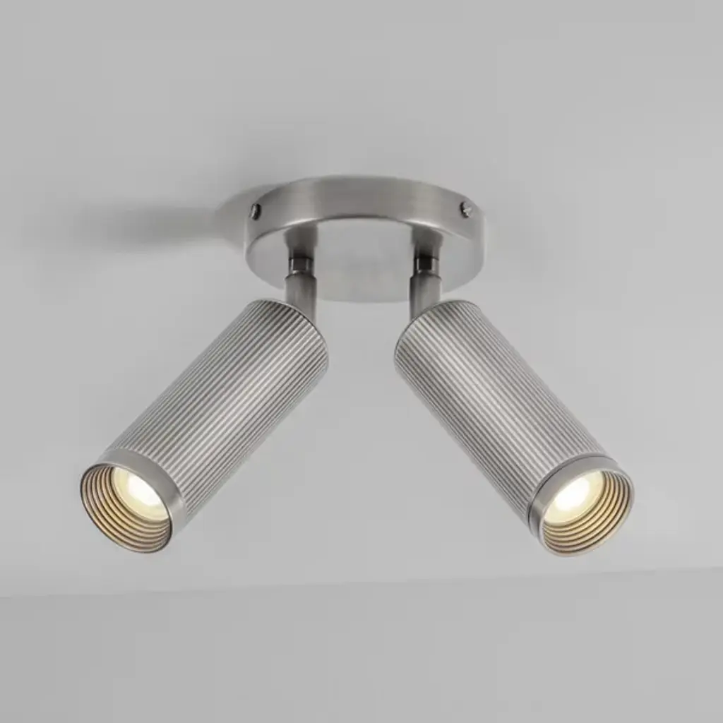 Achieve full visibility with the Spot Double Semi-Flushmount by J. Adams & Co. From a circular plate at your ceiling emerges a pair of dual spotlights. Each individual light hangs at a complementary acute angle to the other, allowing for wide-ranging illumination. Save time by alleviating your need to locate misplaced children’s toys and accessories. Brilliant LEDs make your lost possessions easily findable. Give light to your contemporary family room and ensure that your precious moments will not go unnoticed.