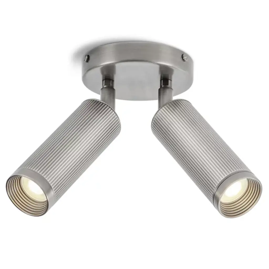 Achieve full visibility with the Spot Double Semi-Flushmount by J. Adams & Co. From a circular plate at your ceiling emerges a pair of dual spotlights. Each individual light hangs at a complementary acute angle to the other, allowing for wide-ranging illumination. Save time by alleviating your need to locate misplaced children’s toys and accessories. Brilliant LEDs make your lost possessions easily findable. Give light to your contemporary family room and ensure that your precious moments will not go unnoticed.