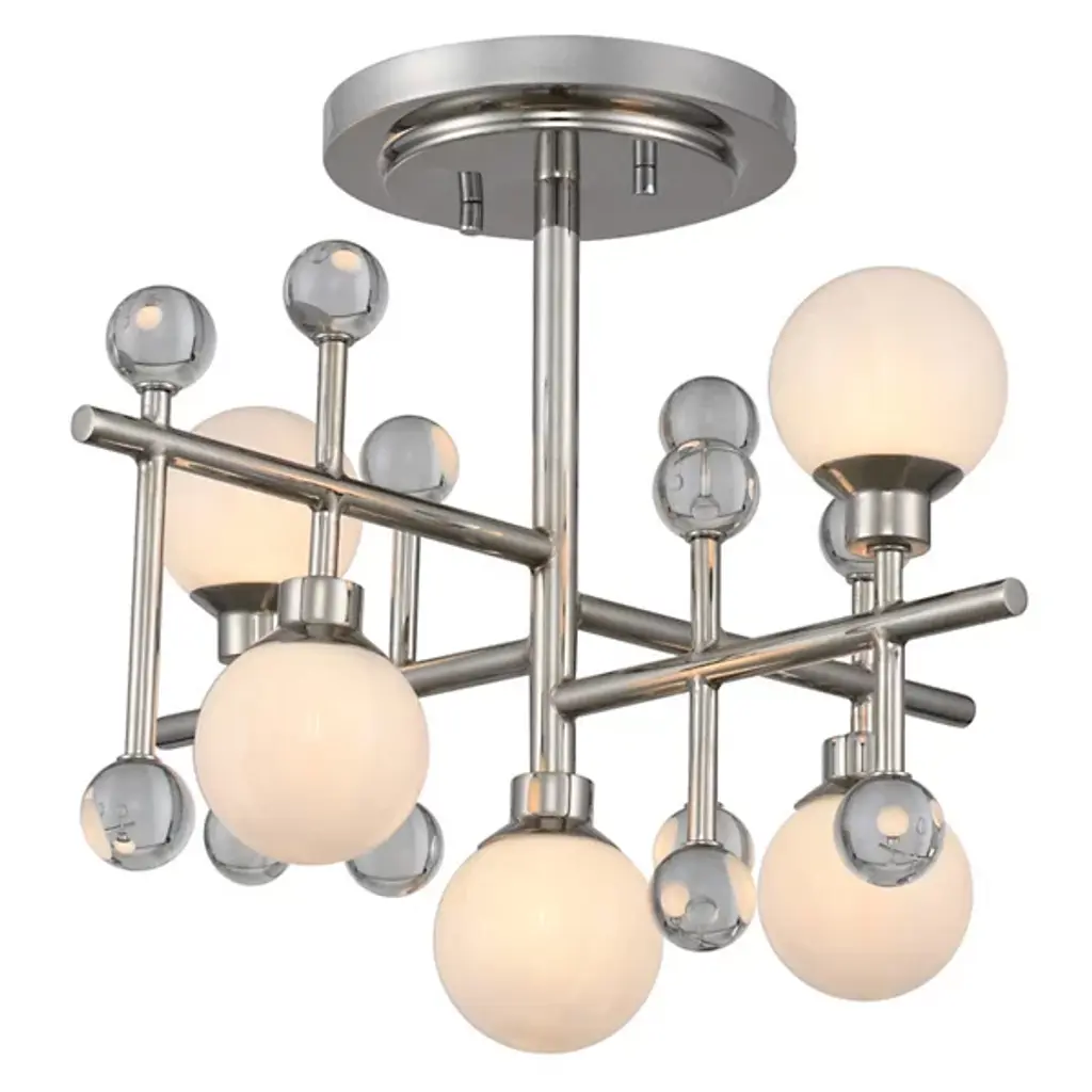 The Sprig Semi-Flushmount by Hubbardton Forge embodies elegant craftsmanship and a distinctive design. Created with attention to detail and made from steel and glass, this stunning semi-flushmount light showcases a unique starburst design that adds an artistic touch to any interior room. The glass globes enhance its attractive appeal and make it an ideal choice for living rooms, dining spaces, or entryways. Whether for subtle or bold lighting, this fixture adds sophistication to various settings.