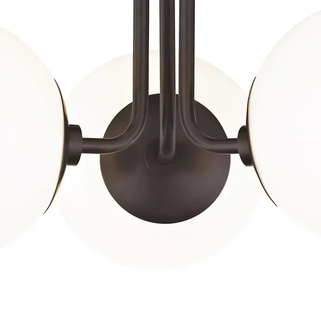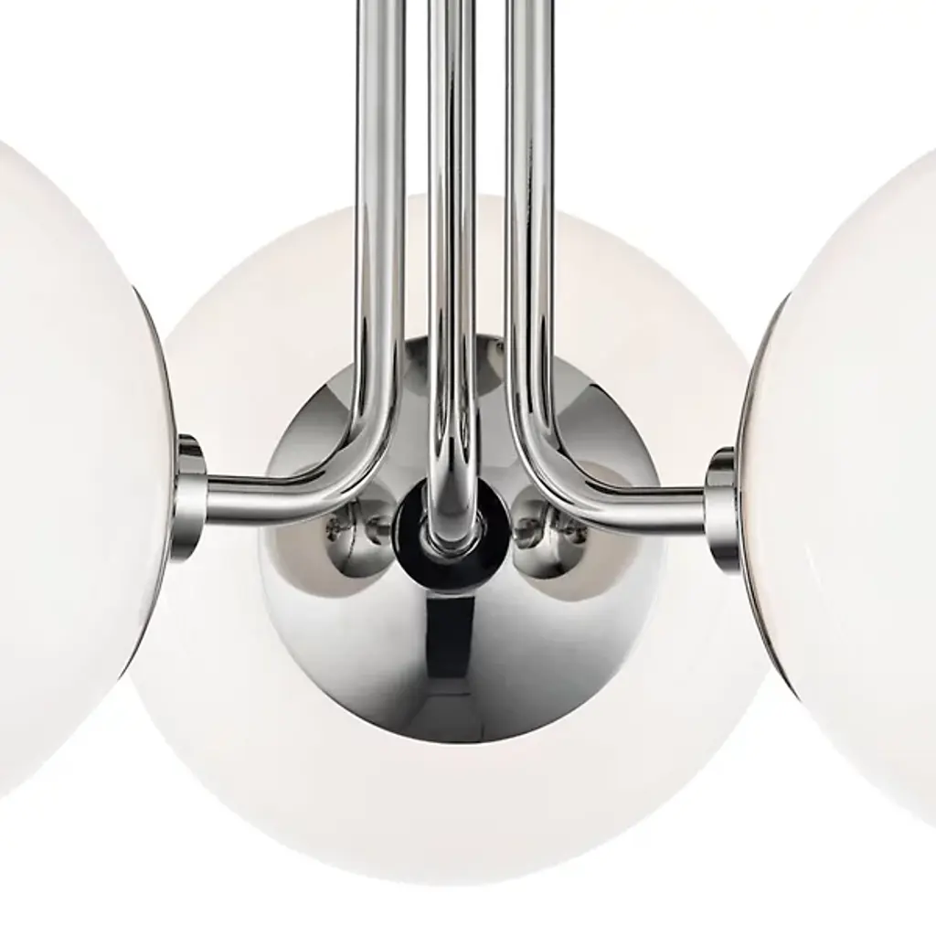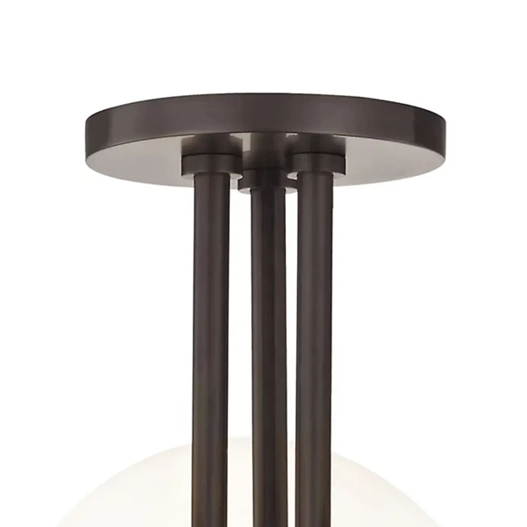 Illuminate a foyer, kitchen or dining room with the stylish Stella Semi-Flushmount by Mitzi. A balanced tripod with mid-century moxie, this fixture showcases glossy Opal Glass globes with Metal shade caps that drop down slightly before extending in a trio of directions. Ideal for directing light toward focal points in a room, this ceiling light provides stylish overhead decorative lighting in classic and contemporary settings.