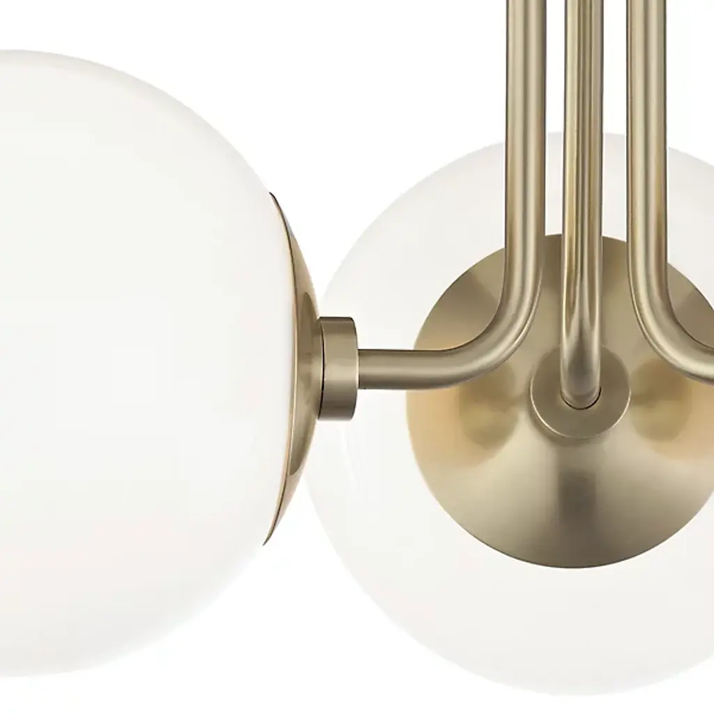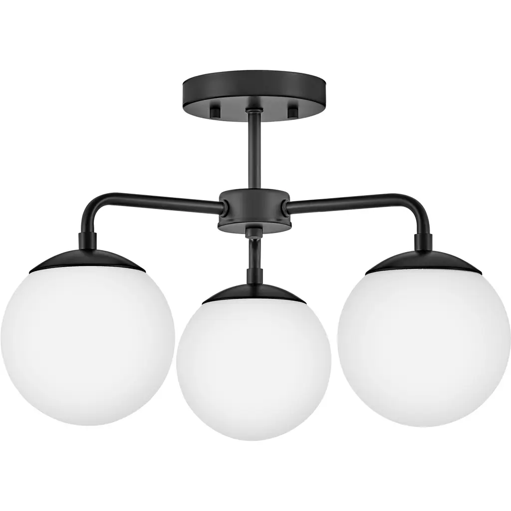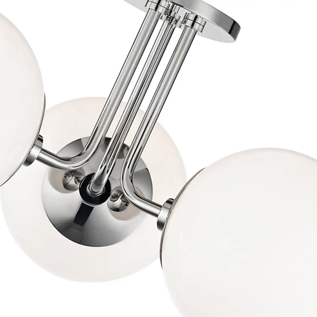 Illuminate a foyer, kitchen or dining room with the stylish Stella Semi-Flushmount by Mitzi. A balanced tripod with mid-century moxie, this fixture showcases glossy Opal Glass globes with Metal shade caps that drop down slightly before extending in a trio of directions. Ideal for directing light toward focal points in a room, this ceiling light provides stylish overhead decorative lighting in classic and contemporary settings.