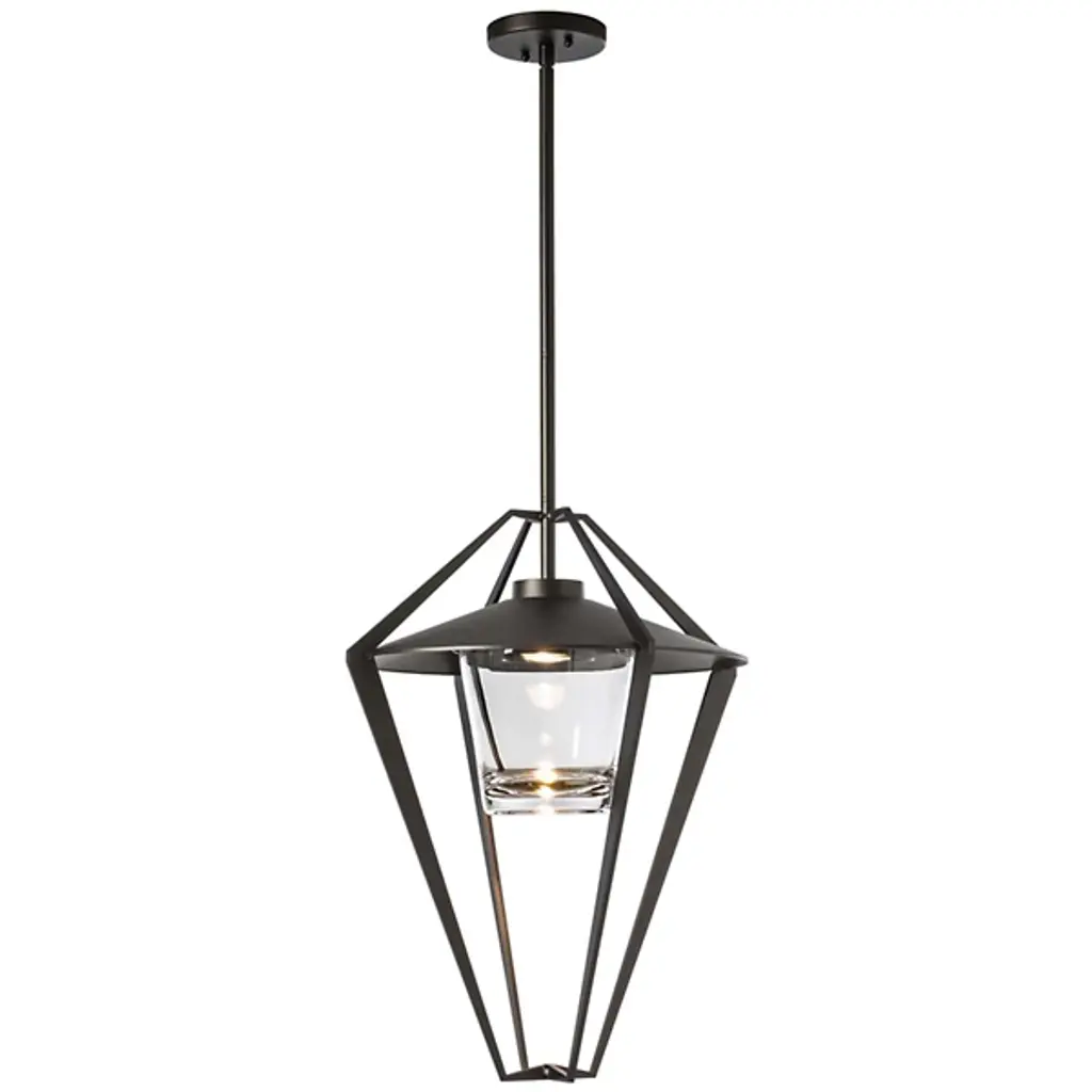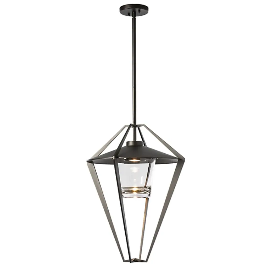 The Stellar Outdoor Pendant/Semi-Flushmount by Hubbardton Forge illuminates any portico, entryway or covered patio with soft, inviting light. Its multi-stem system makes the fixture adjustable in length, allowing it to be used as a pendant or a semi-flush mount lamp. This modern take on a classic lantern design features an open cage that surrounds a heavy glass shade and the light source within, giving it an airy and contemporary look. It is also available in a range of coastal finishes, designed to stand up to harsh environments and weather conditions.