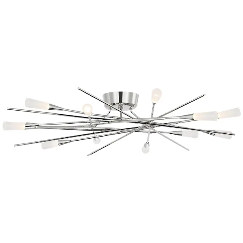 The Stellar Radial LED Semi Flushmount from Visual Comfort Signature adapts its chandelier counterpart's design principles for lower ceiling applications. The steel framework extends outward at calculated angles, supporting multiple LED light sources with acrylic diffusers. Chapman & Myers maintain the fixture's distinctive geometry while adjusting its vertical scale. The ceiling-mounted design creates an expansive lighting pattern, making it ideal for spaces requiring both visual impact and practical illumination.