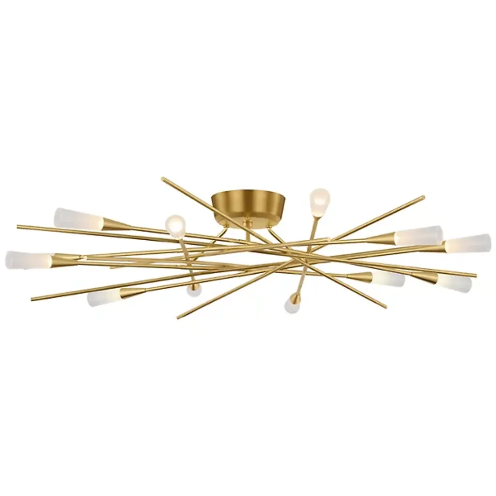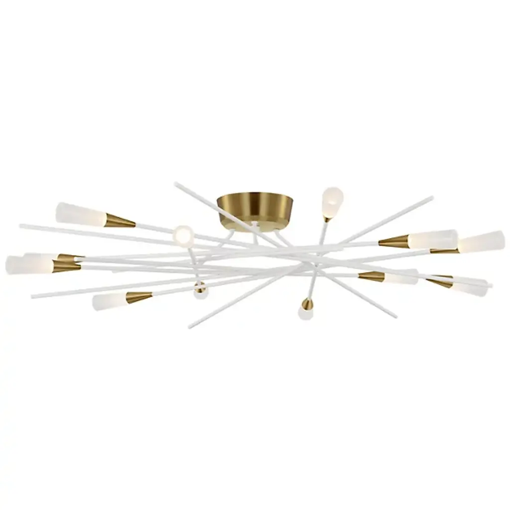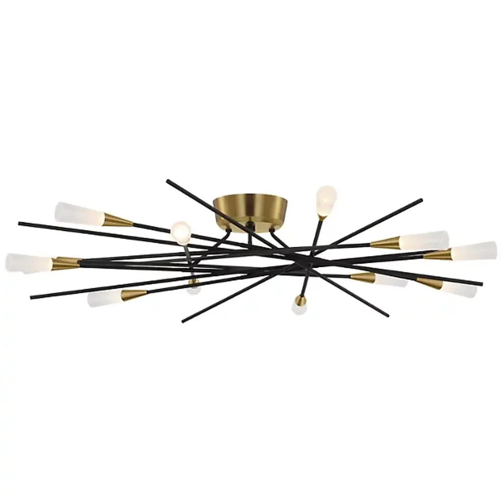 The Stellar Radial LED Semi Flushmount from Visual Comfort Signature adapts its chandelier counterpart's design principles for lower ceiling applications. The steel framework extends outward at calculated angles, supporting multiple LED light sources with acrylic diffusers. Chapman & Myers maintain the fixture's distinctive geometry while adjusting its vertical scale. The ceiling-mounted design creates an expansive lighting pattern, making it ideal for spaces requiring both visual impact and practical illumination.