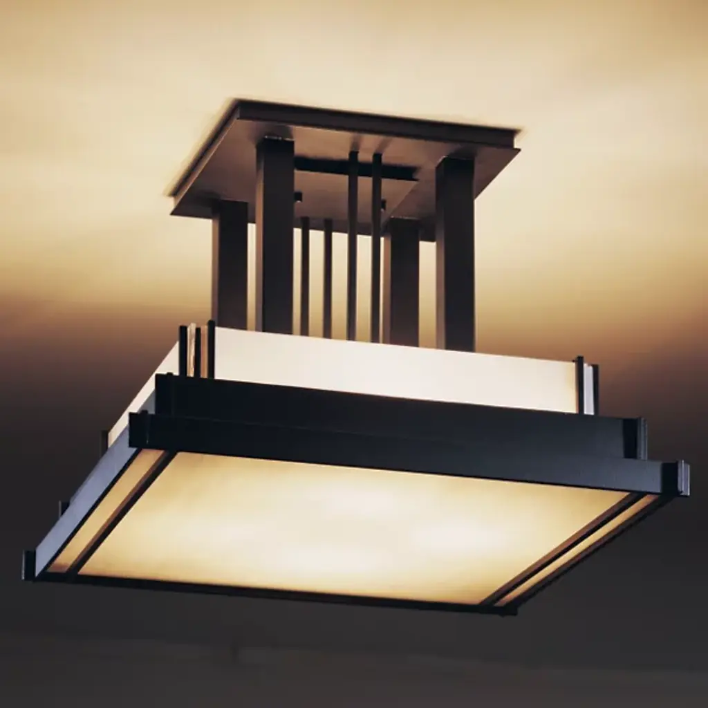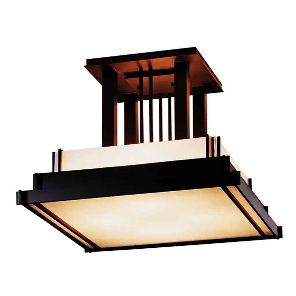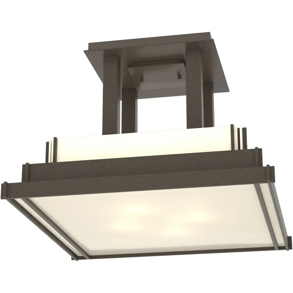 The Hubbardton Forge Steppe Drop Version Semi-Flushmount - Small creates warm and inviting illumination while adding an element of handcrafted elegance to interior decor. The Steppe Drop Version Semi-Flushmount - Small features hand-forged wrought iron, hand-blown glass, and opaque finishes.