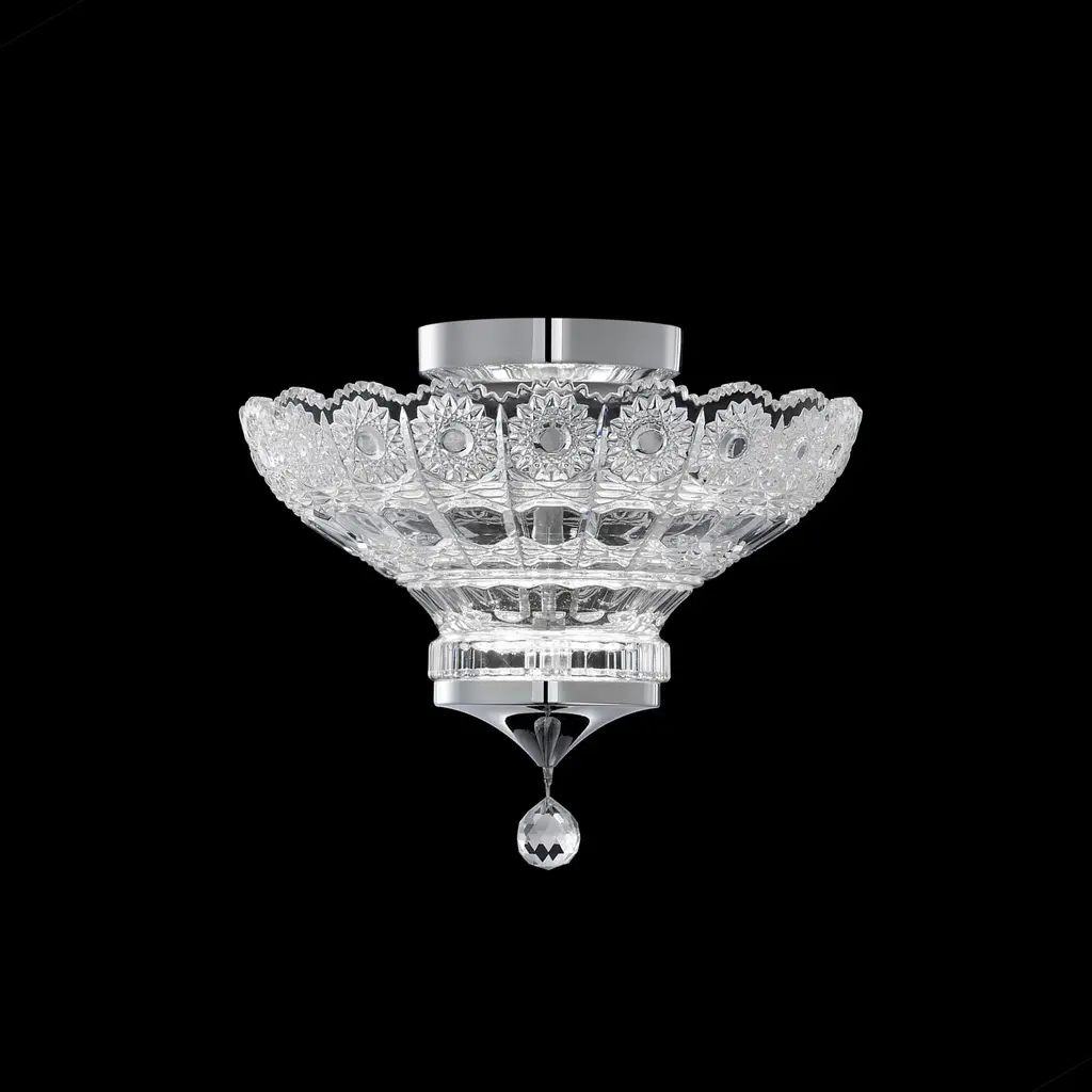 Celebrate classical heritage with the Sterling Collection. This hand-cut European crystal close-to-ceiling light is authentically patterned and painstakingly crafted with care, creating a magnificent luminaire that will delight the senses. This LED luminaires feature a 3-CCT color temperature selectable switch that can be accessed at the time of installation to toggle between 3000K-3500K-4000K color temperatures. Constructed of aluminum featuring Schonbek Heritage Handcut Clear Crystal, handcrafted in Europe by a craftsman using authentic, centuries-old techniques. Available in two sizes.