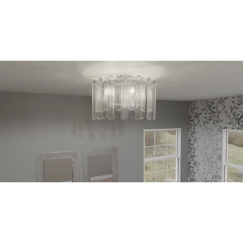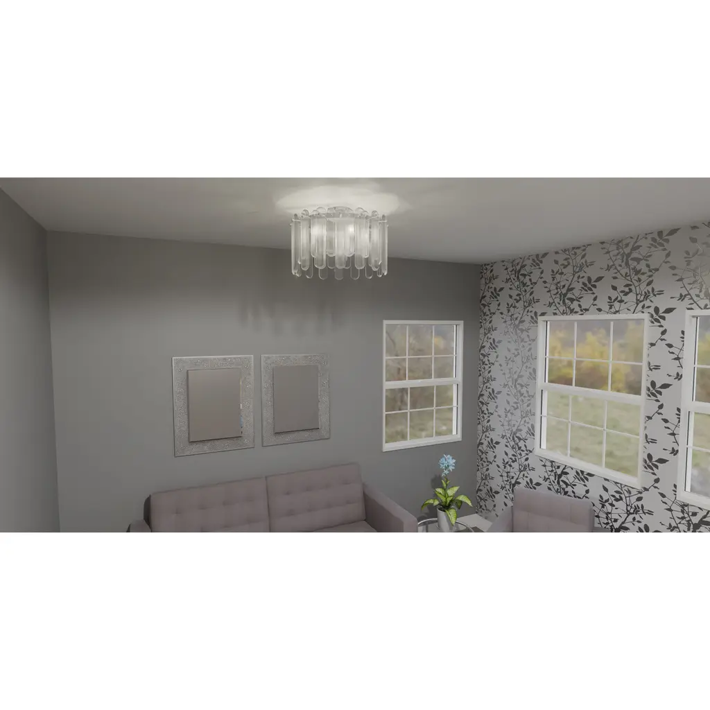 With a polished chrome finish and clear glass, Stiles is all about sparkle and luxury. Alternating lengths of clear glass create a dazzling illumination effect, giving the impression of glimmering crystal. Part of the popular Platinum by Quoizel collection, the Stiles ceiling light is the perfect complement to glam, modern, or contemporary spaces.