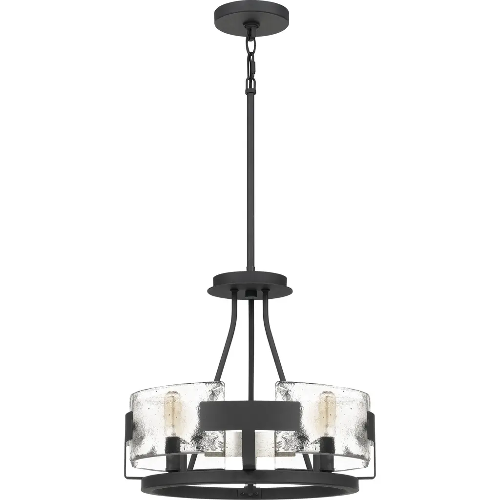 The Stratum delivers drama and depth in volumes. Thick panels of handmade glass subtly conceal the bulb, while allowing the light to pass through. A robust metal ribbon finished in royal ebony completes this artisanal look.