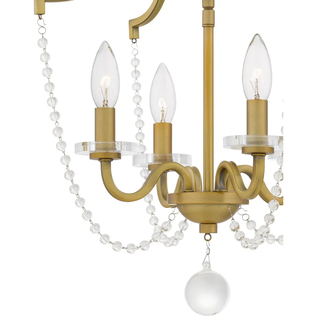 Aged brass and clear crystal glass beads make an elegant pairing in the Sunday collection. Available as a semi-flush mount or mini chandelier, Sunday adds a hint of glamour to any foyer, home office, dining room, or living room. Hang this versatile fixture in a variety of settings for instant luxury.