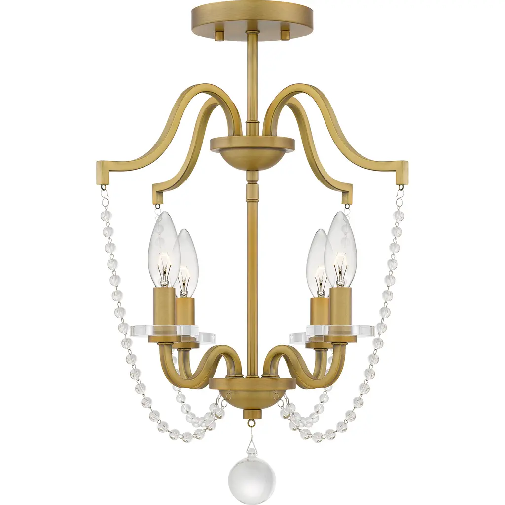 Sunday 4 Light 16 Inch Aged Brass Semi-Flush Mount Ceiling Light
