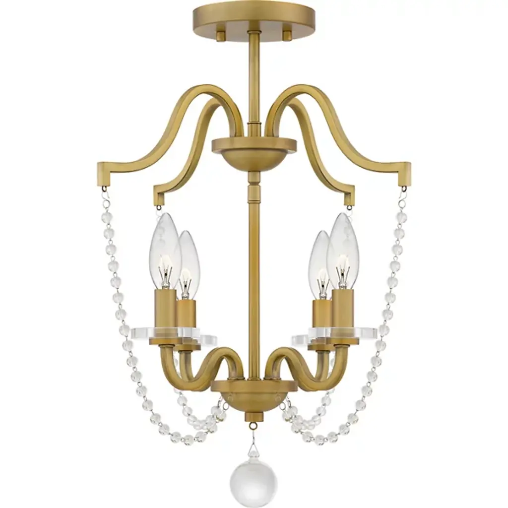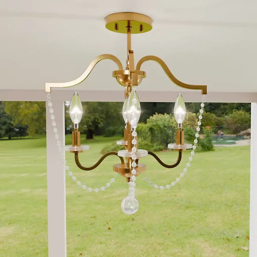 The Sunday Semi-Flushmount from Quoizel is where a steel framework meets clear crystal glass beads for an exquisite blend of elegance and glamour. Crafted with precision, this semi-flushmount fixture adds a touch of luxury to your space, whether it’s your foyer, home office, dining room, or living room. The steel framework features curved arms that elegantly join the beads, creating a captivating visual effect. The globe ornamentation at the base adds the finishing touch. You can adjust the brightness level of its LEDs with a separately sold ELV dimmer.