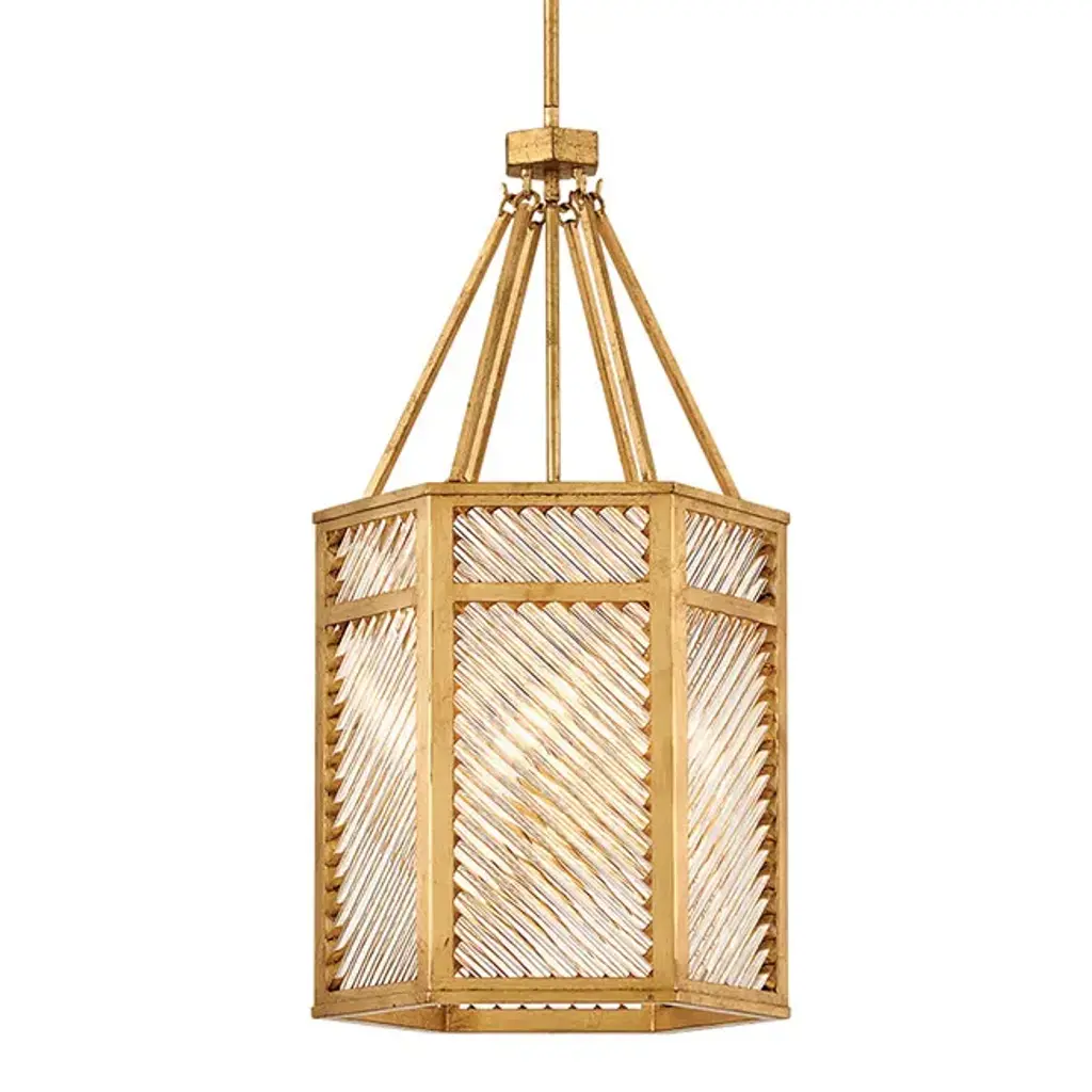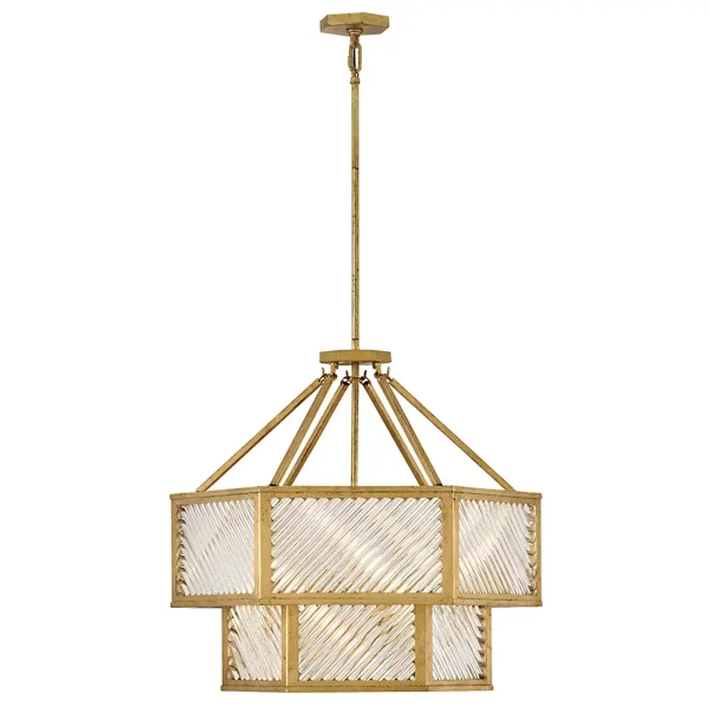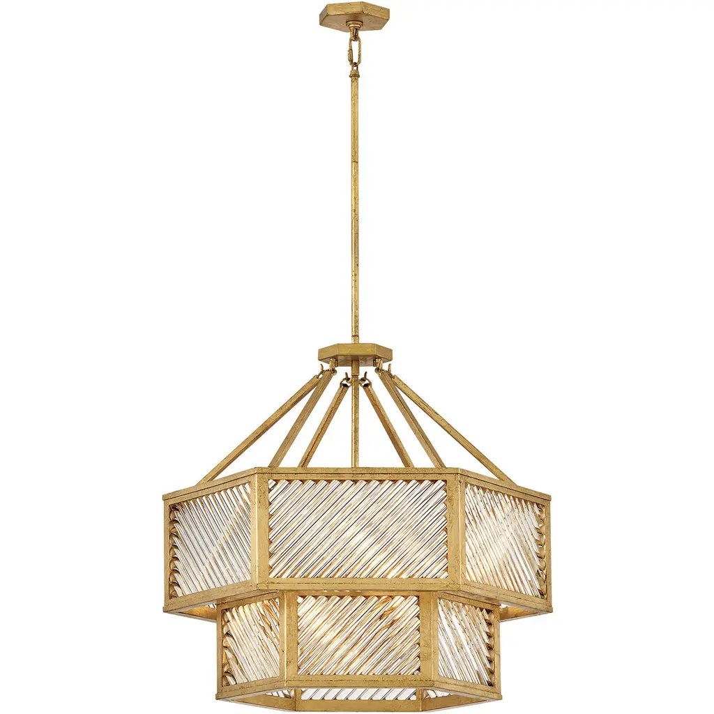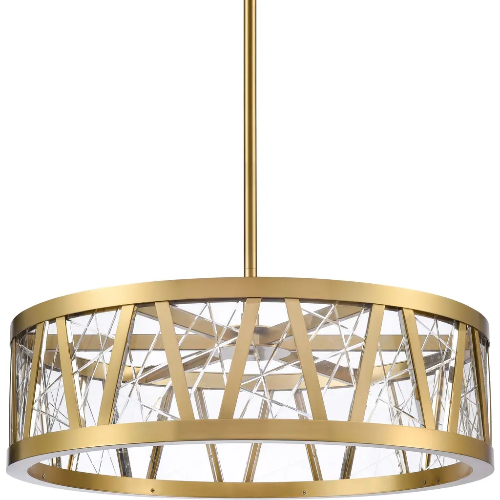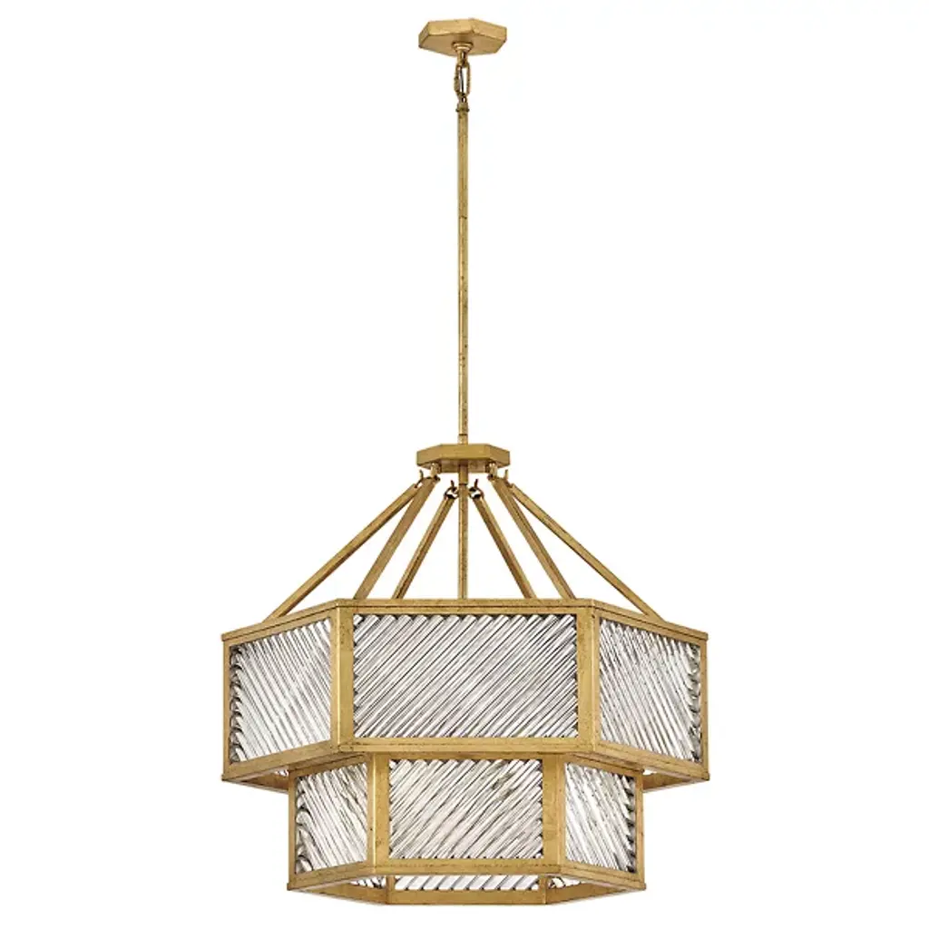 The Sura Convertible Semi-Flushmount / Chandelier from Hinkley brings mid-century design principles into the present through its distinctive glass rod arrangement. The hexagonal framework houses diagonal crystal elements that play with light in unexpected ways. Angled glass pieces form an intricate herringbone pattern that multiplies illumination throughout the space. Multiple stem options allow for customized installation heights, making this piece adaptable as either a semi-flush mount or chandelier. The diagonal glass placement creates an ever-changing display of refracted light, while the structured frame maintains visual balance and proportion.