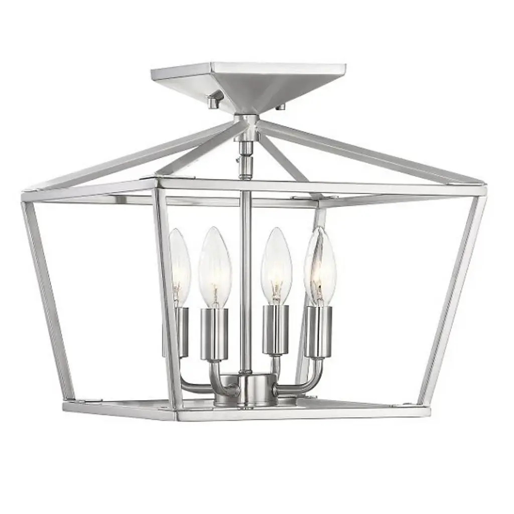 Dress your home décor with the Sylvan Semi-Flushmount by Crystorama. This handsome piece features an open frame design with curved embellishments and balled finials that houses an inner candelabra (with or without shades). A spherical central hub and long swooping arms give the candelabra a refined personality, while its lamping produces a warm, sociable ambiance that leaves a lasting impression.