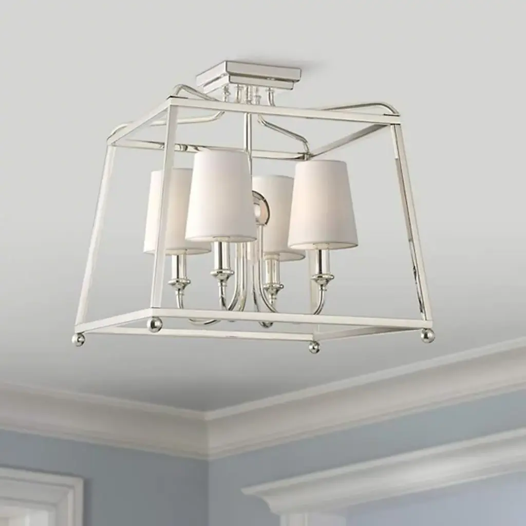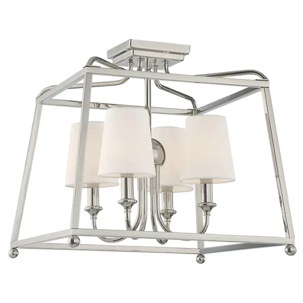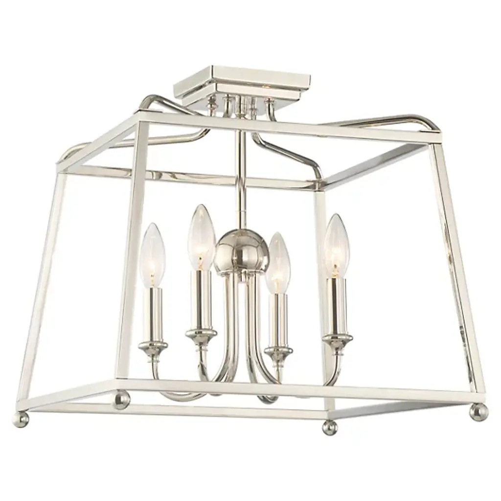 Dress your home décor with the Sylvan Semi-Flushmount by Crystorama. This handsome piece features an open frame design with curved embellishments and balled finials that houses an inner candelabra (with or without shades). A spherical central hub and long swooping arms give the candelabra a refined personality, while its lamping produces a warm, sociable ambiance that leaves a lasting impression.