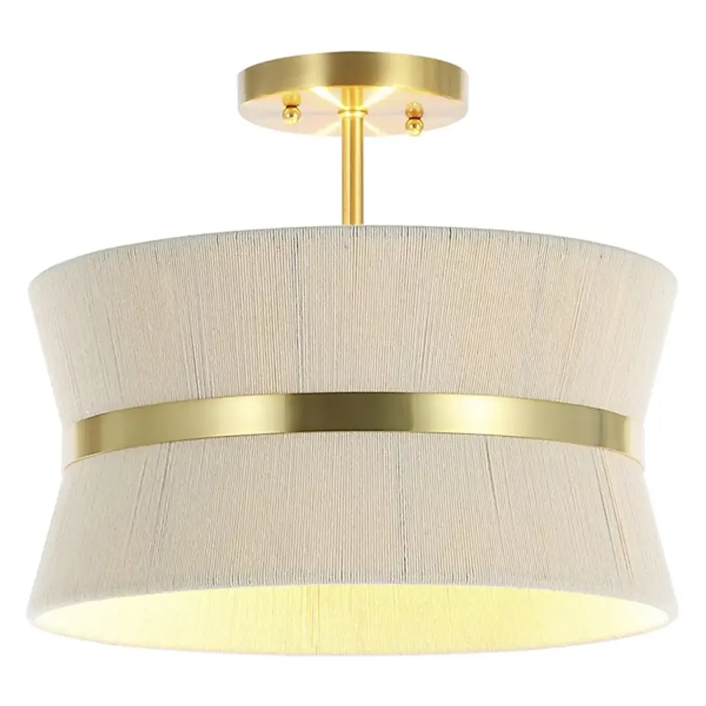The Sylvie 3 Light Semi Flush Mount with string shade is a perfect blend of style and functionality, ideal for adding a touch of contemporary light to your bedroom or living room. Its sleek string and metal design effortlessly complements modern décor, while being LED compatible and dimmable, offering customizable lighting to suit your mood and style.