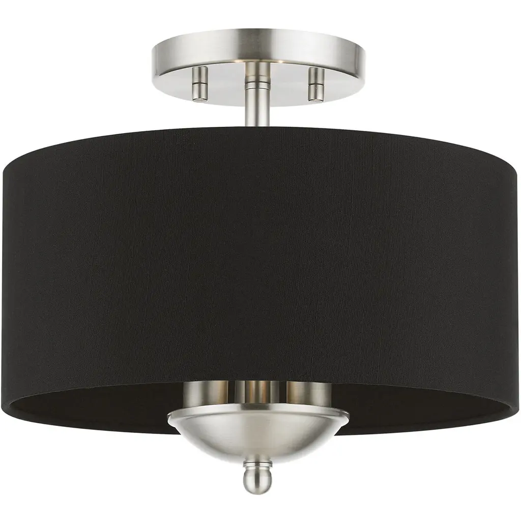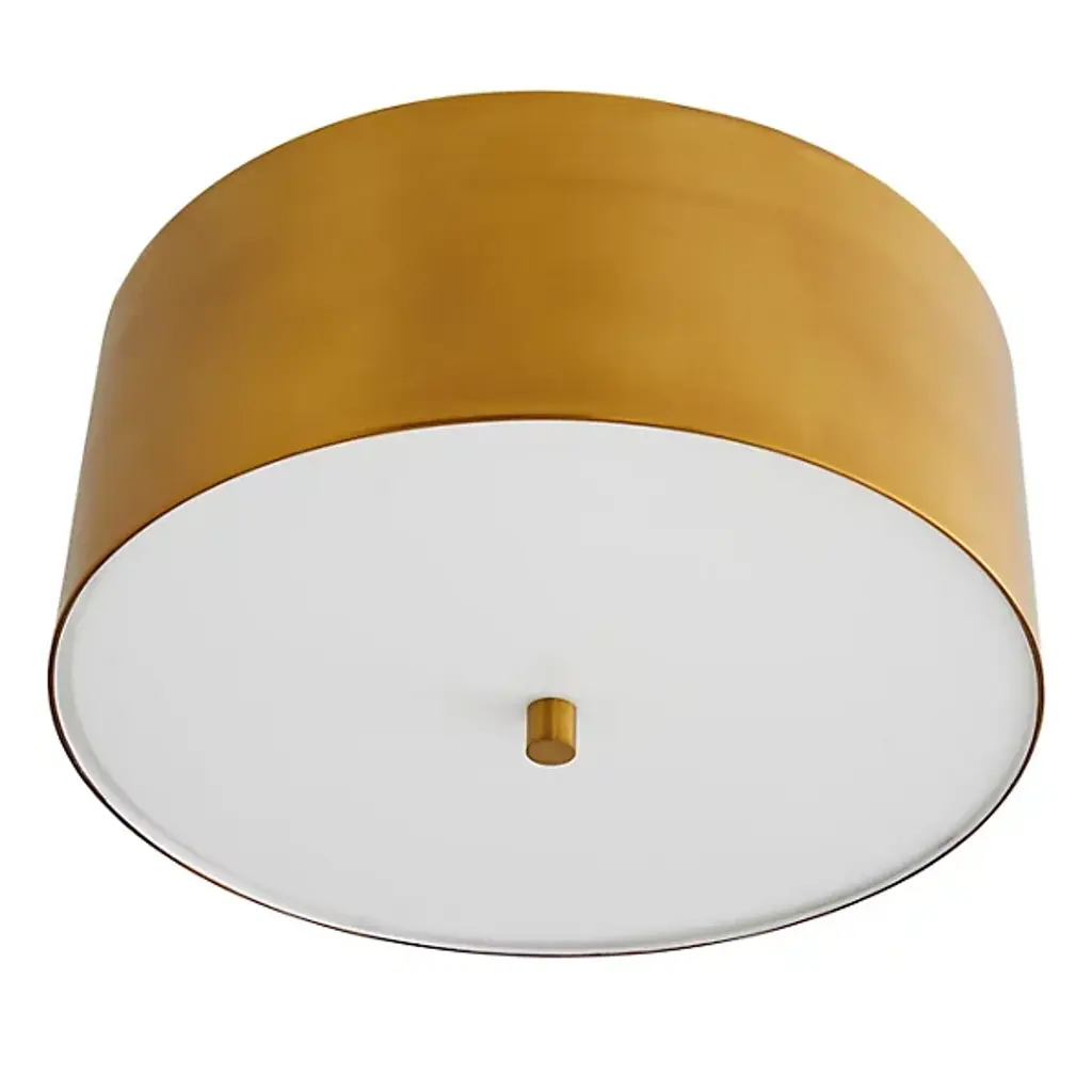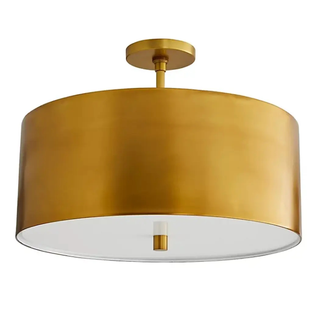The Tarbell Semi-Flushmount by Arteriors captivates a space with its straightforward design and sleek composition. Suspended from a round canopy and narrow stem, the curved drum shade is constructed from steel to form a smooth and sophisticated shade. An acrylic diffuser maintains the simplicity of its design as it effortlessly softens the light that glows from the incandescent lamping inside. A rounded finial rounds out the modern fixture, making it a stylish addition to a bathroom, kitchen, or bedroom.