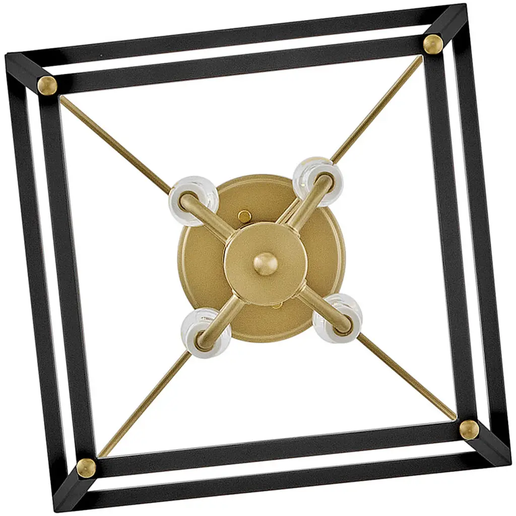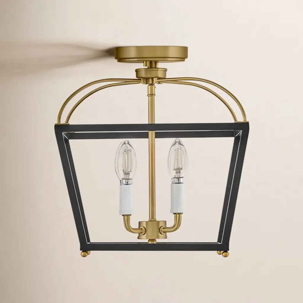 Tate 4 Light 13 Inch Black With Lacquered Brass Semi-Flush Mount Ceiling Light