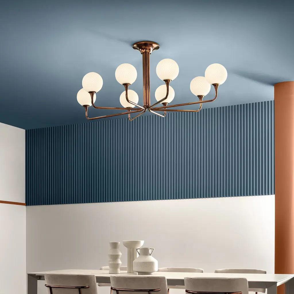 Add a touch of elegance to any room with the Tee Oval Semi Flush Mount from Masiero. Its curved design and organic stems are reminiscent of a calla lily flower, while the opal glass spheres bring warmth and life to your living space. This ceiling light is the perfect balance of rigor and grace, making it a must-have for any modern space. Highlights