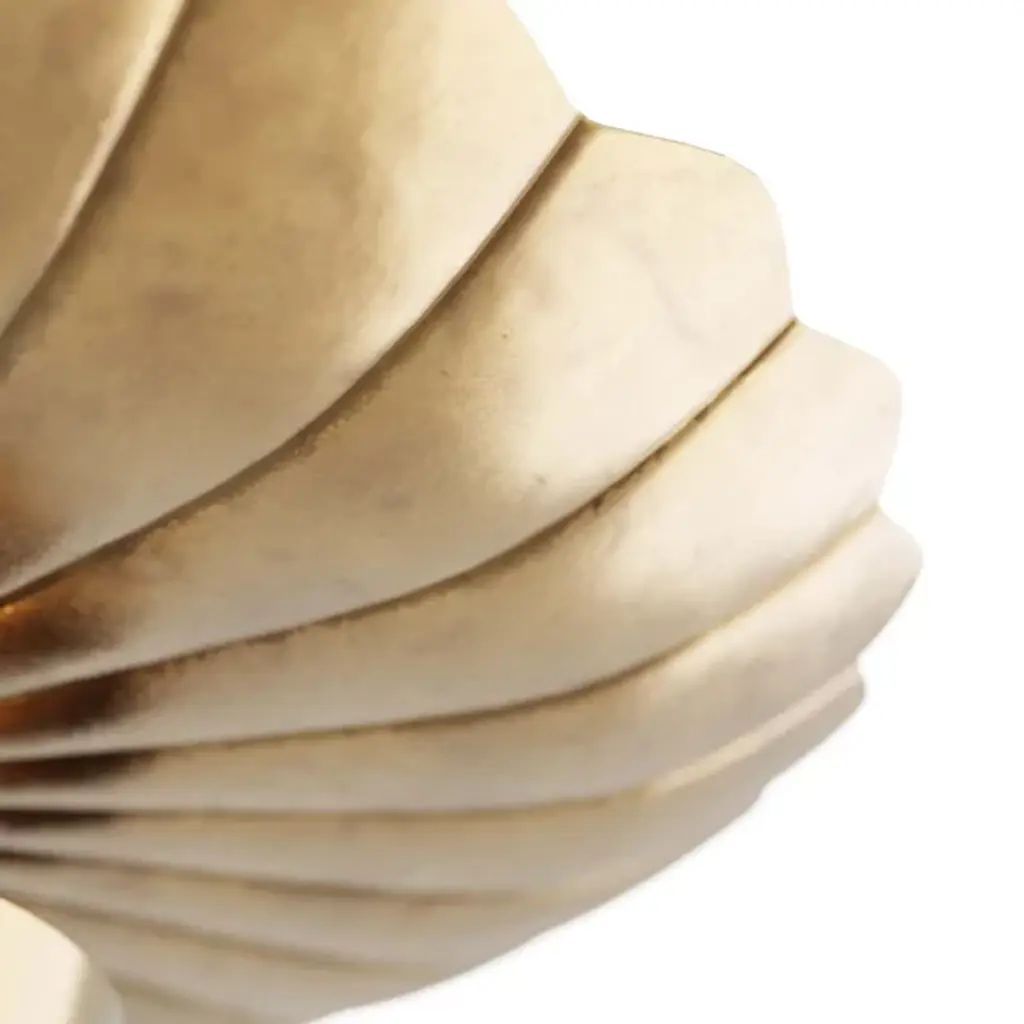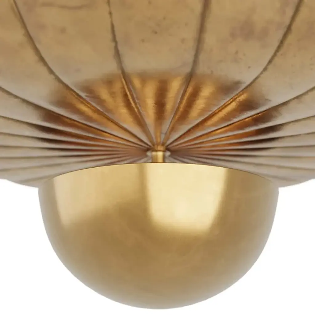 The Teresa Semi-Flushmount by Arteriors is a playful and whimsical lighting fixture, adding throwback elegance to one’s living space. The fixture is cast entirely in brass and features a domed body inspired by a lily pad. The top reflector is forged with seams to evoke petals. The light emitted from the fixture is reflected upwards to the ceiling, creating a soft and diffused glow. This piece is the perfect way to add a touch of natural and retro style to your home.