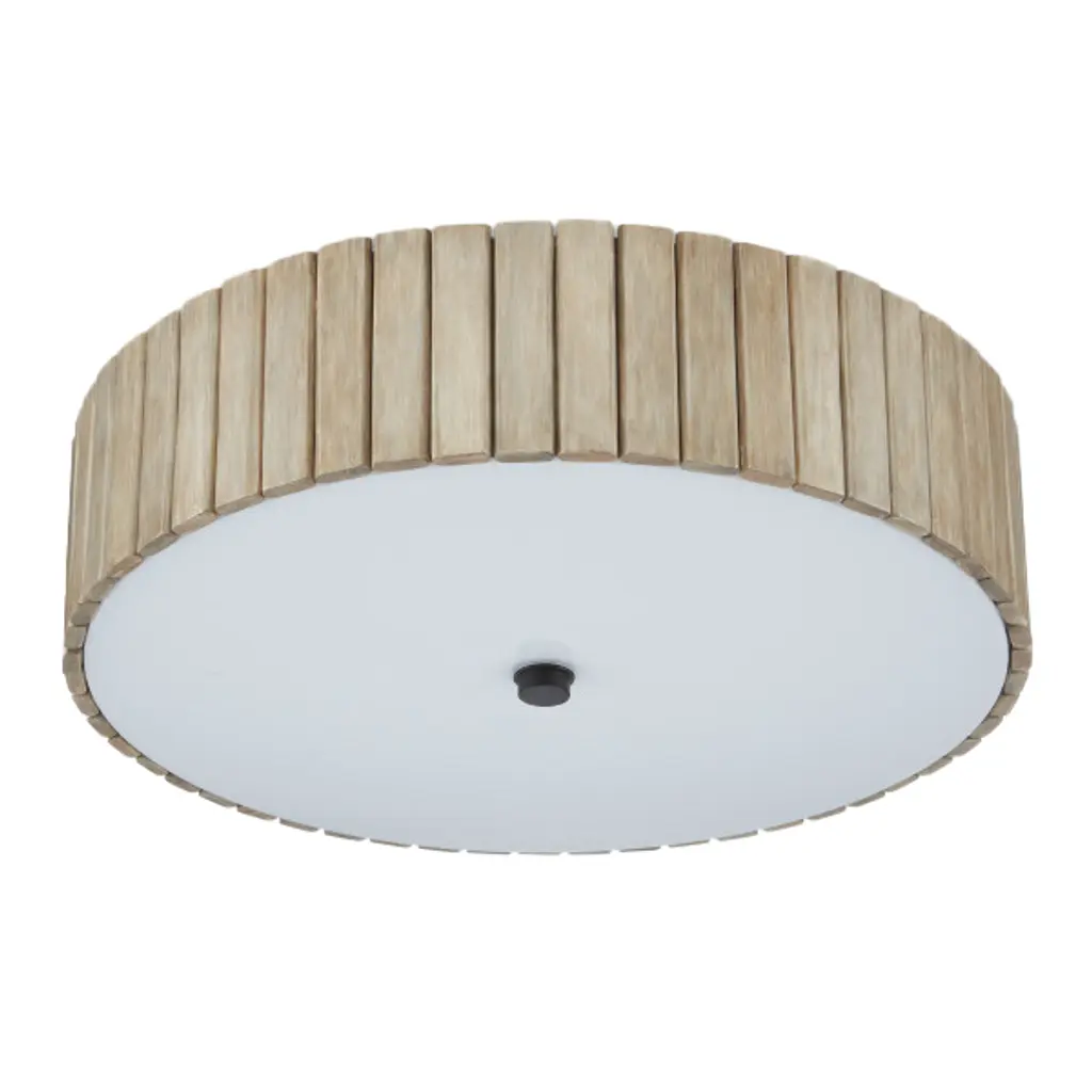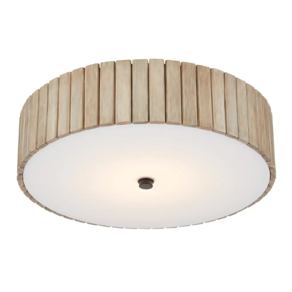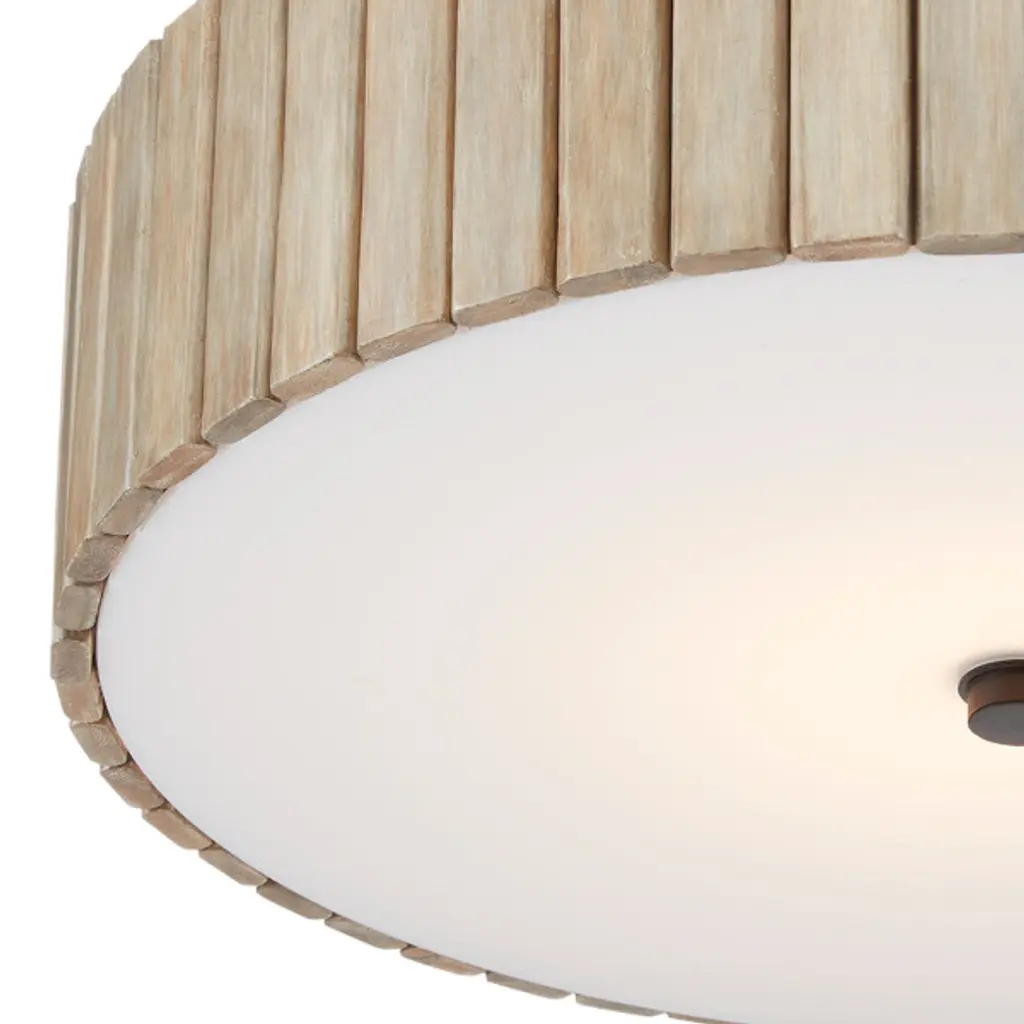Sustainable materials and modern natural style were the inspirations for the Tetterby Flush-Mount. Designed by Tom Caldwell, this flush-mount is made from natural bamboo for a whitewashed effect. The bamboo flush-mount is one of our offerings fitted with integrated LED technology. The finish on the finial that holds the acrylic diffuser in place is a contrasting element.