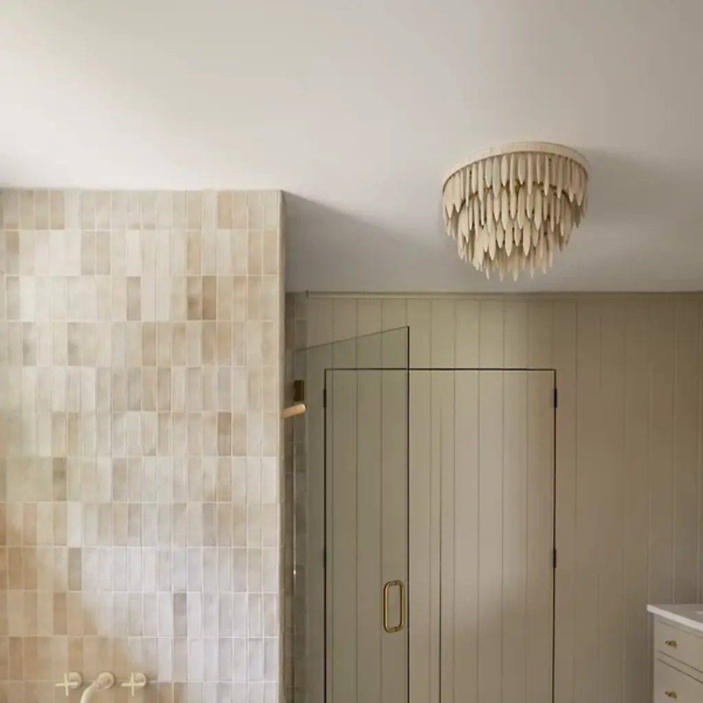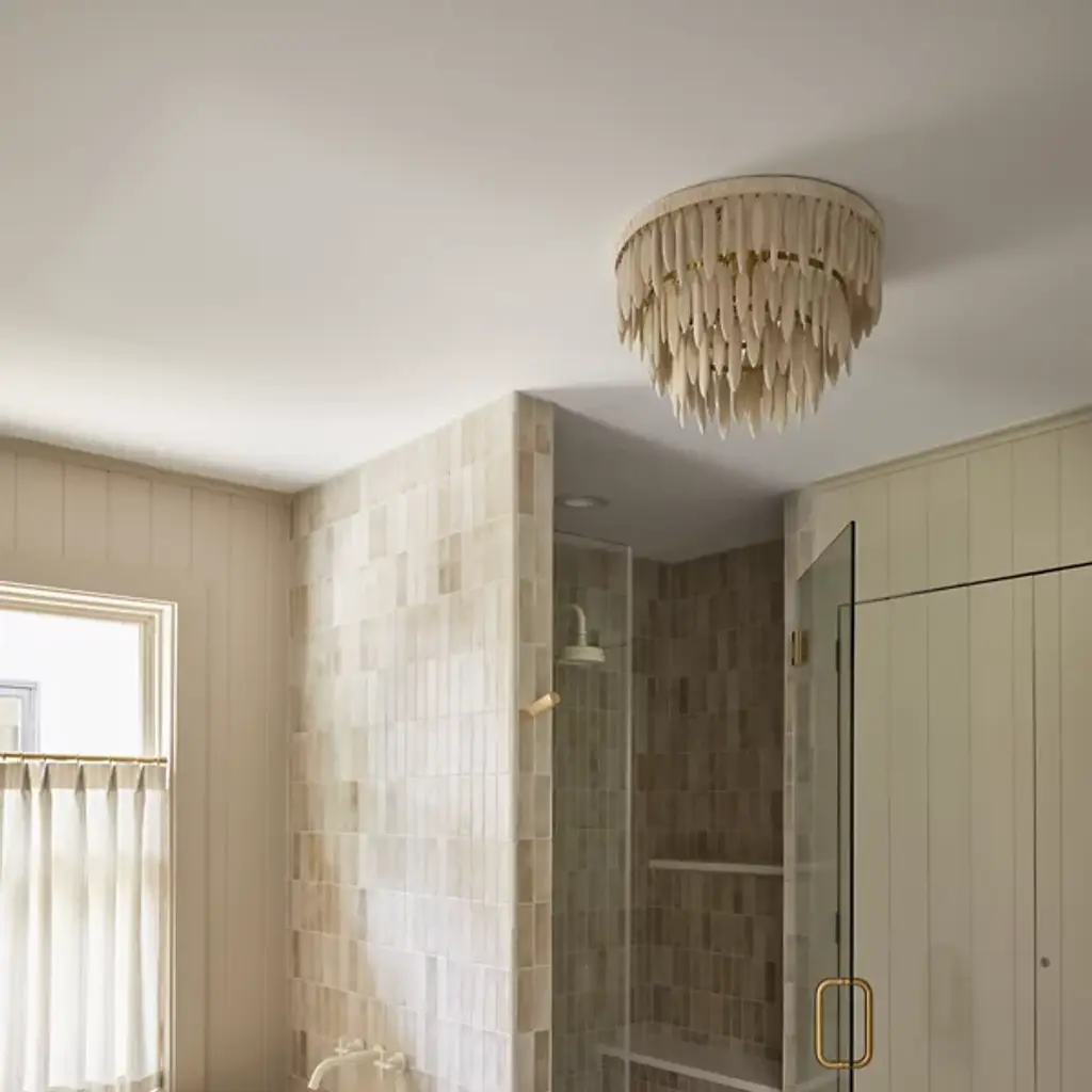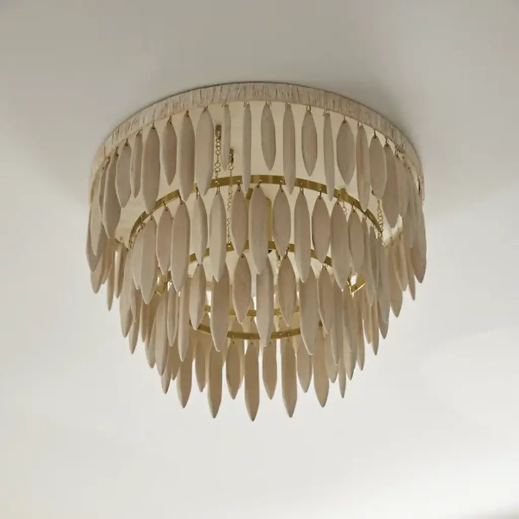 Organically elevate interiors with the Tiffany Semi-Flushmount from Mitzi. Tiers of elongated wood beads in coastal textured wash encircle gleaming metal rings for a sculptural statement. Natural raffia tops the light, providing an earthy finish. Hung alone or in a matching set, it sculpts ceilings with breezy brilliance, blending polished metals with subtle organic textures. Lends natural elegance to coastal, farmhouse, or contemporary spaces with a welcome natural presence.