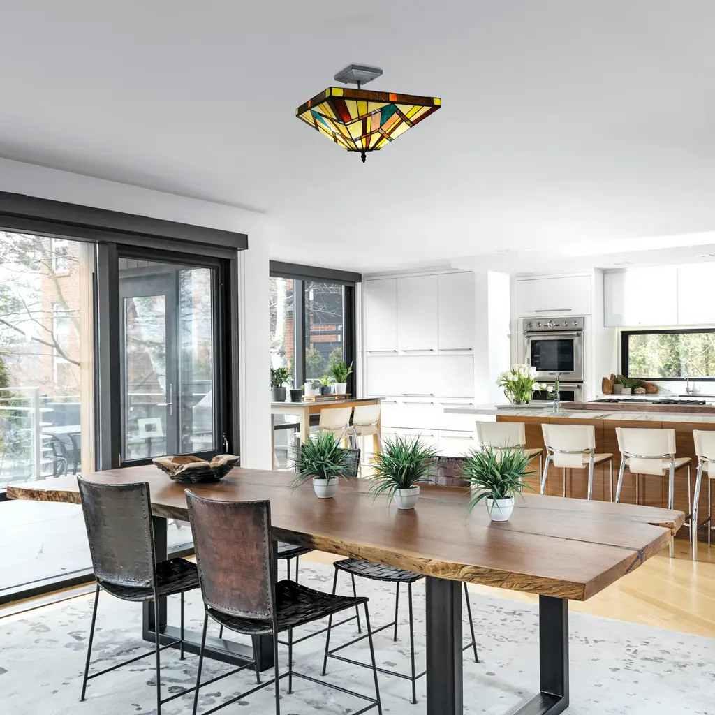Tiffany Style Mission Design 2-Light Blackish Bronze Semi-Flush Mount - Multi-Color