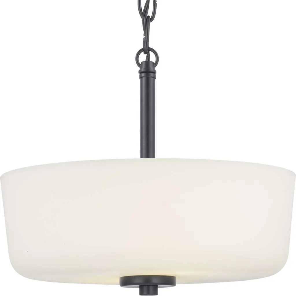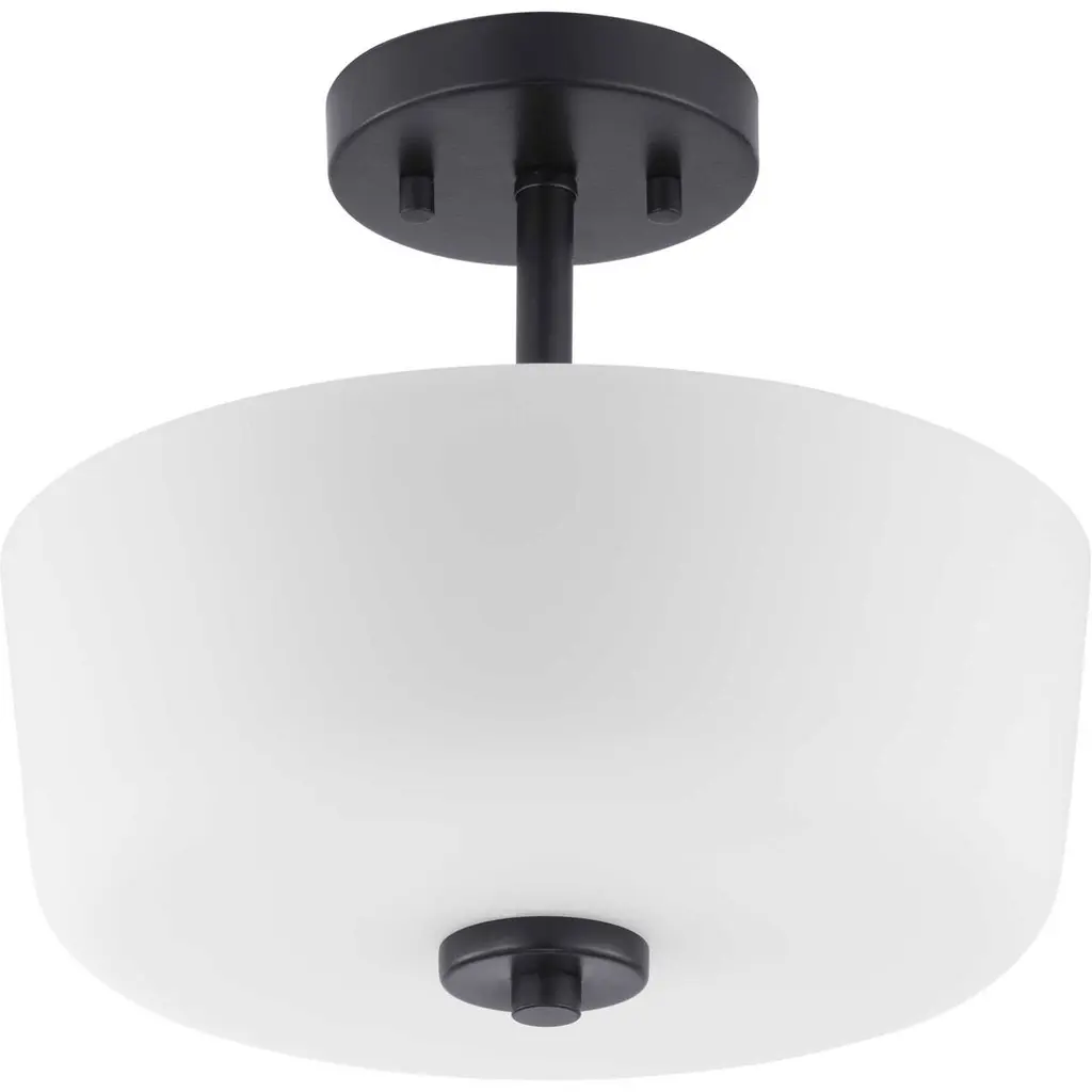 A modern take on a classic object, Tobin’s inspiration comes from the timeless mid-century forms. The tubular arms of the two-light semi-flush convertible supports an etched white glass shade and finished in Black. The Tobin collection is ideal for those who appreciate Modern design styles.