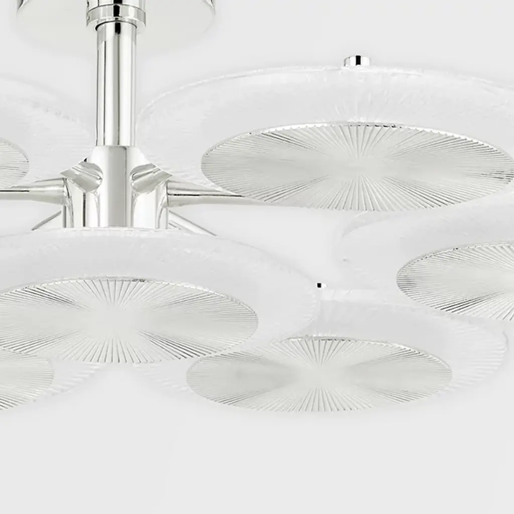 Illuminate your living space with the elegant Topaz LED Semi-Flushmount by Corbett Lighting. A collection of steel plates suspends in midair through attachment to a downrod secured by a canopy at your ceiling. These plates boast refined spindle-like patterning and are neatly encircled by glass shades. An integrated LED allows brilliant light to disperse throughout your surroundings with ease. The Topaz LED Chandelier is made available in multiple light quantities so that you can choose the light fixture that is right for you.