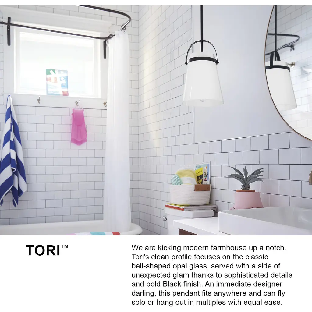 We are kicking modern farmhouse up a notch. Tori’s clean profile focuses on the classic bell-shaped cased opal glass, served with a side of unexpected glam thanks to sophisticated details and versatile finishes. An immediate designer darling, this pendant fits anywhere and can fly solo or hang out in multiples with equal ease.